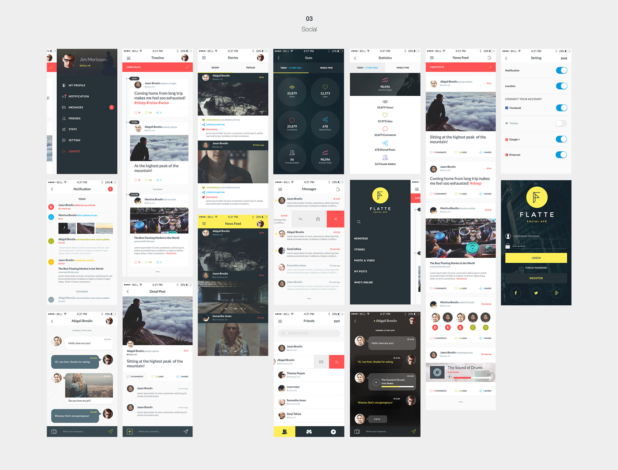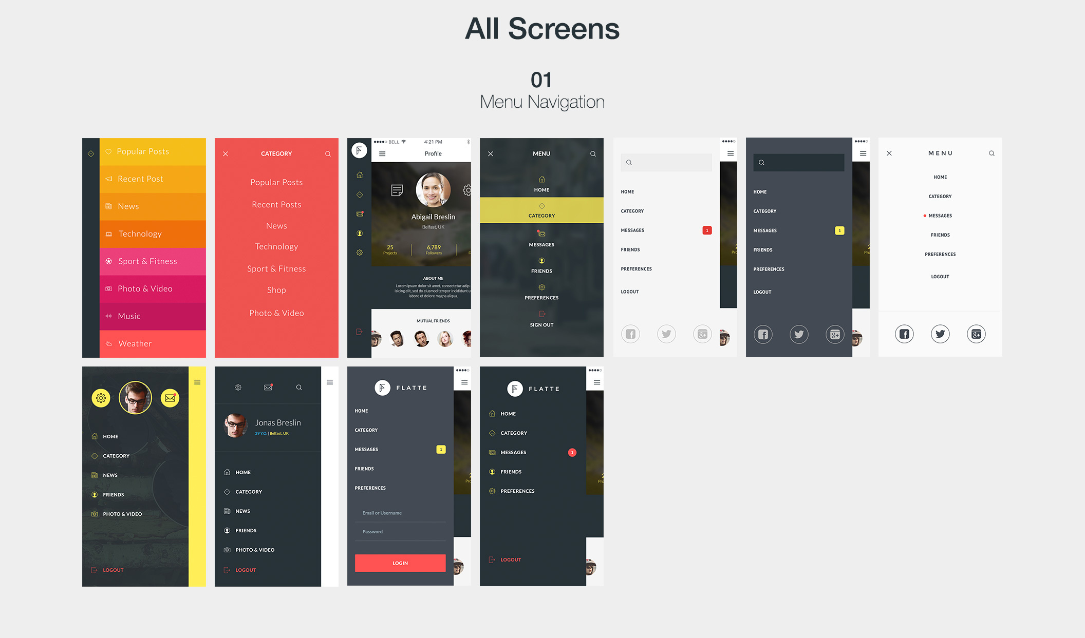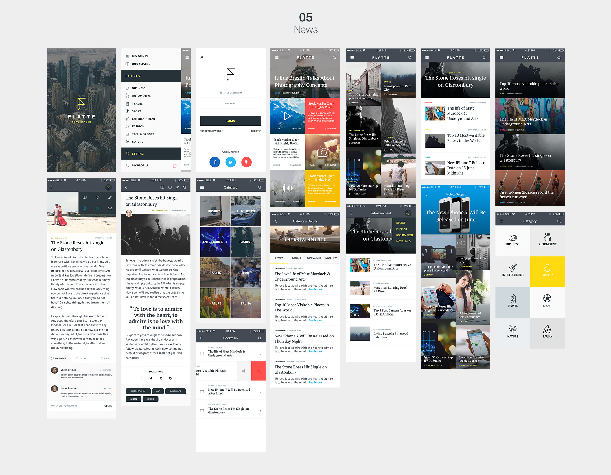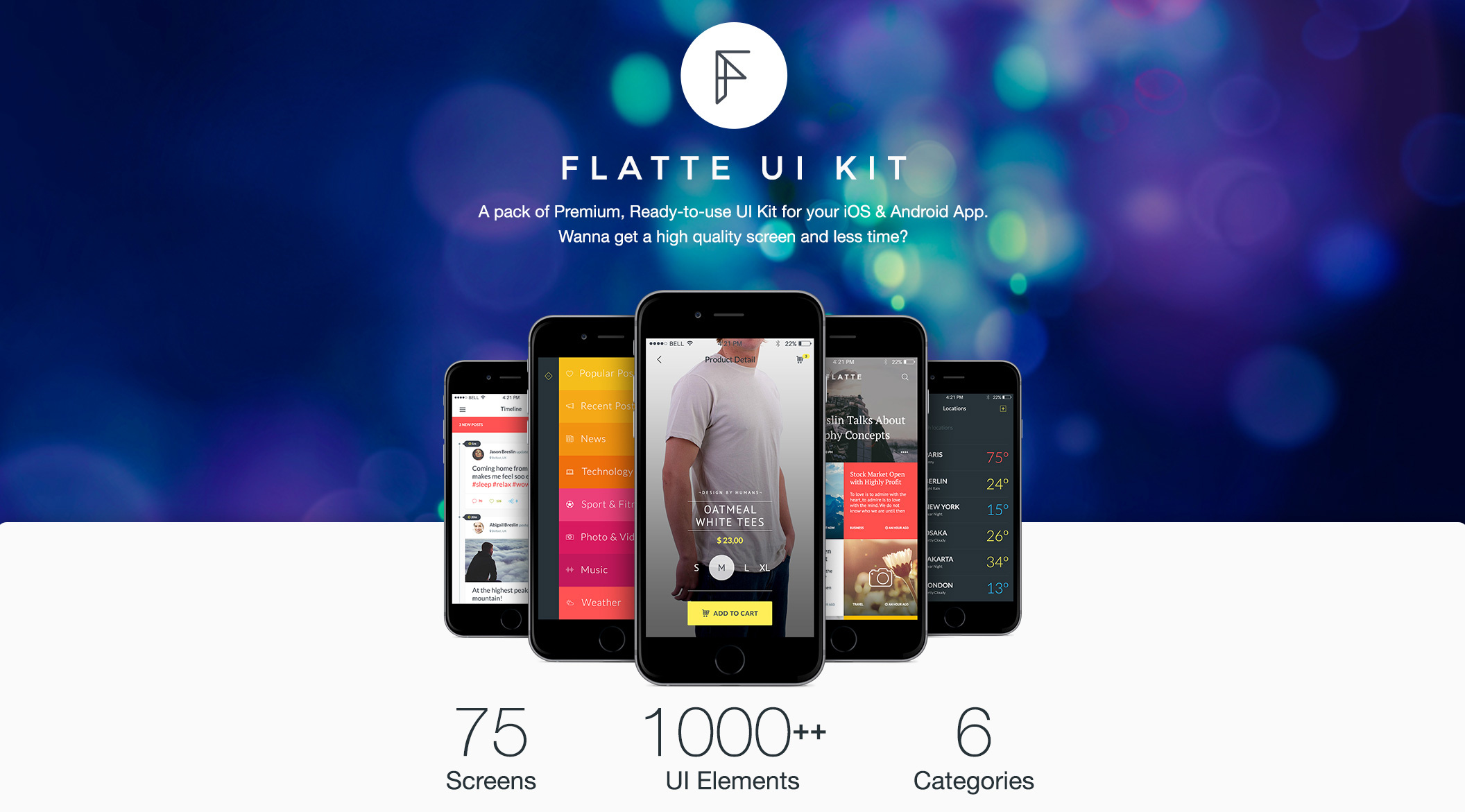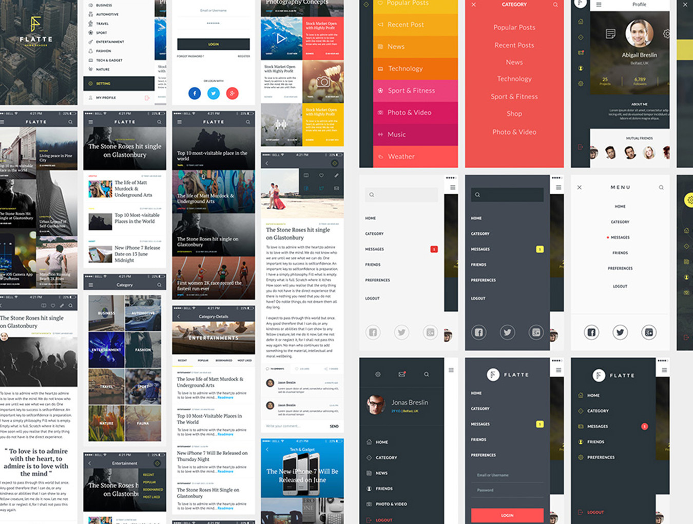 75 iOS屏幕移动应用程序UI工具包,Flatte UI工具包