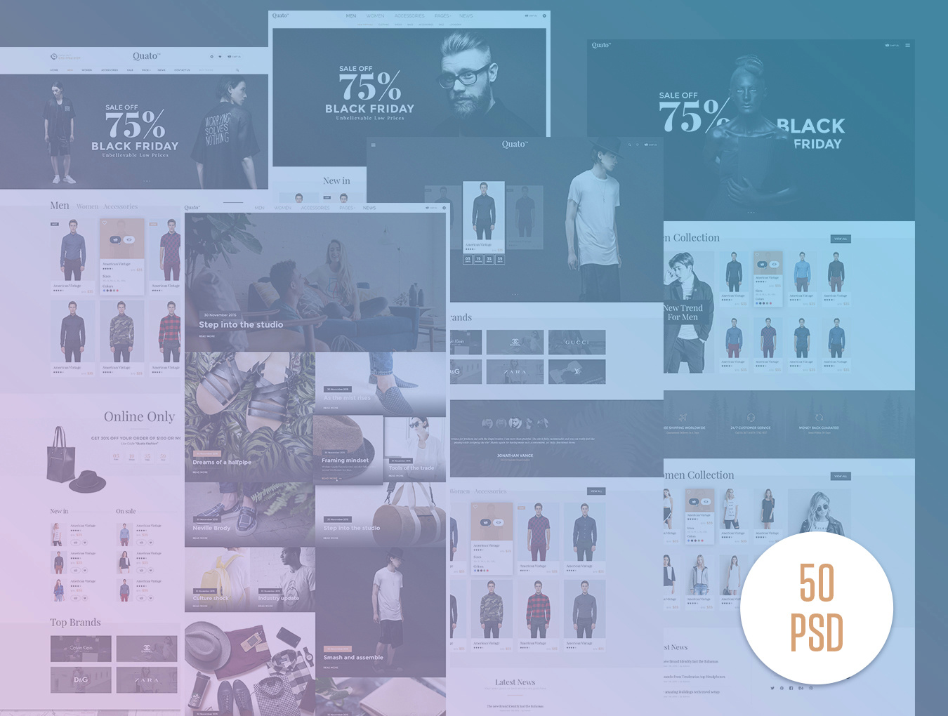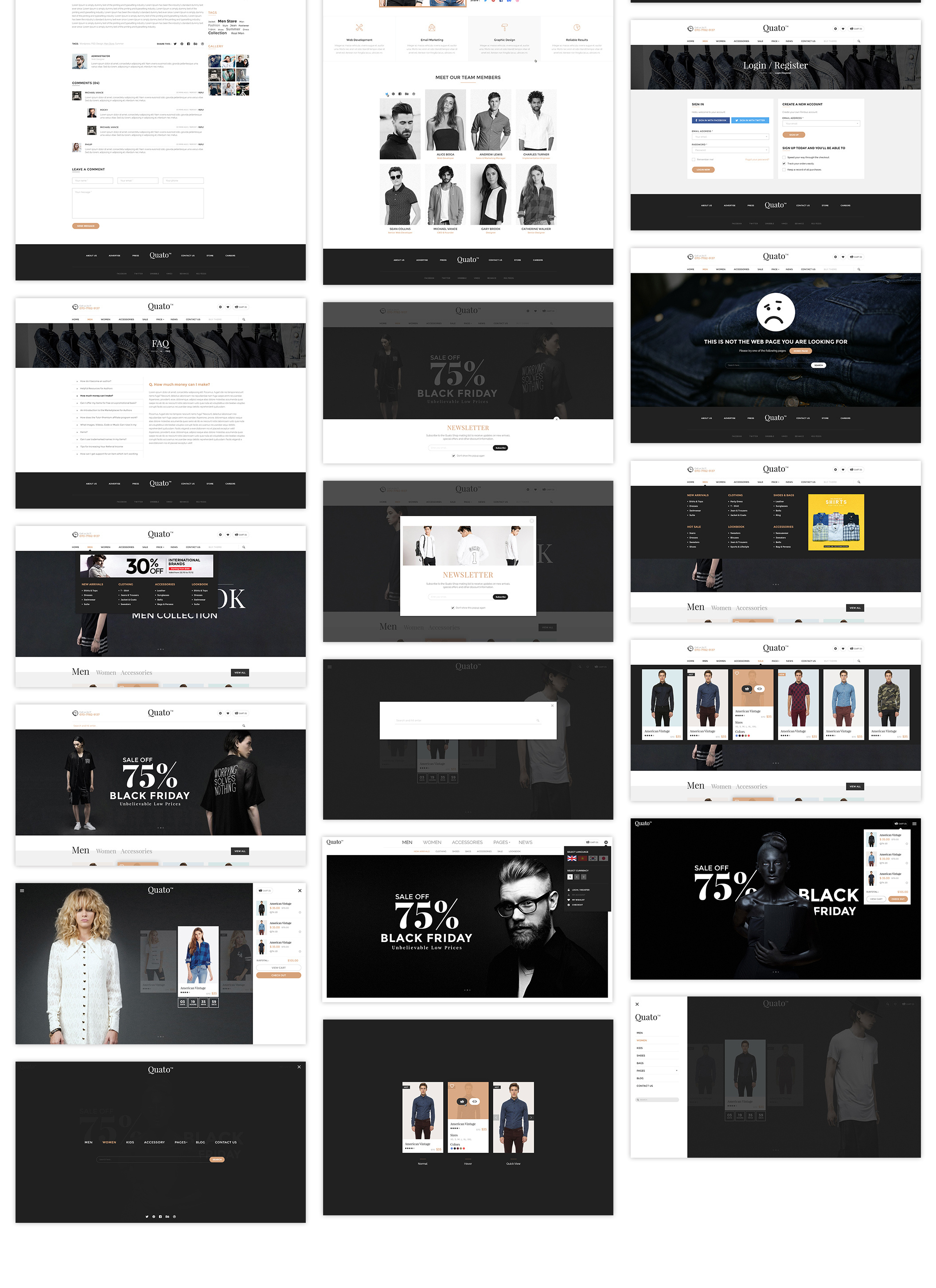 Quato - 电子商务PSD模板是一个独特的电子商务网站模板在Photoshop中设计与现代的外观。 PSD文件组织良好,相应地命名,所以很容易定制和更新。包括50个PSD文件。