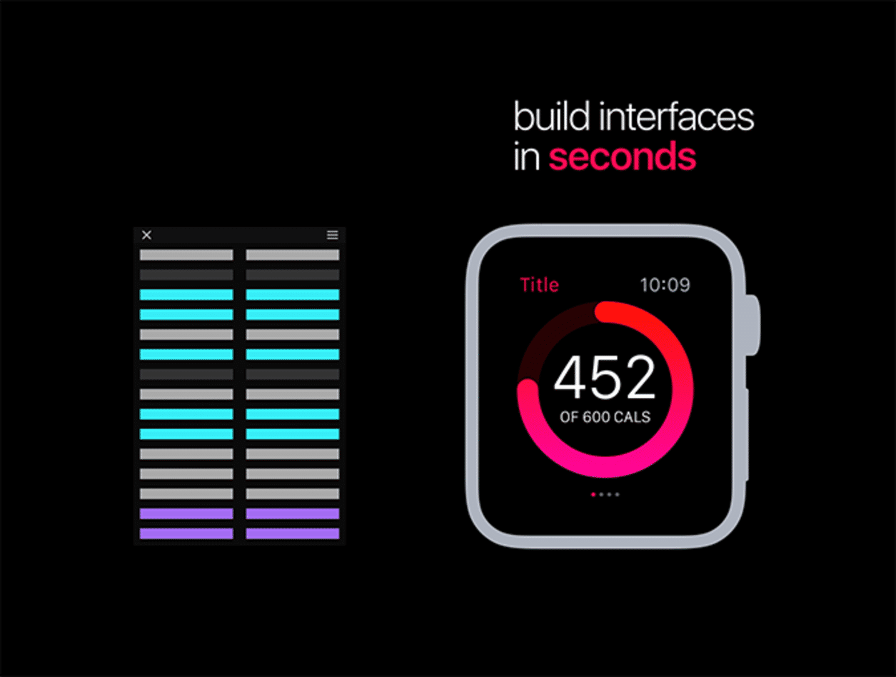 Apple Watch用户界面工具包操作:单击Actions(操作)面板上的按钮即可在画布上绘制一个元素。在几秒钟内,您可以绘制苹果手表38毫米和42毫米的接口,并管理图标!它从最新的Watch OS创建默认的元素,遵循有关颜色,位置和字体绝对准确性的指导原则。一切都是可编辑的,因此定制它非常容易,并成为您的应用程序设计的起点。