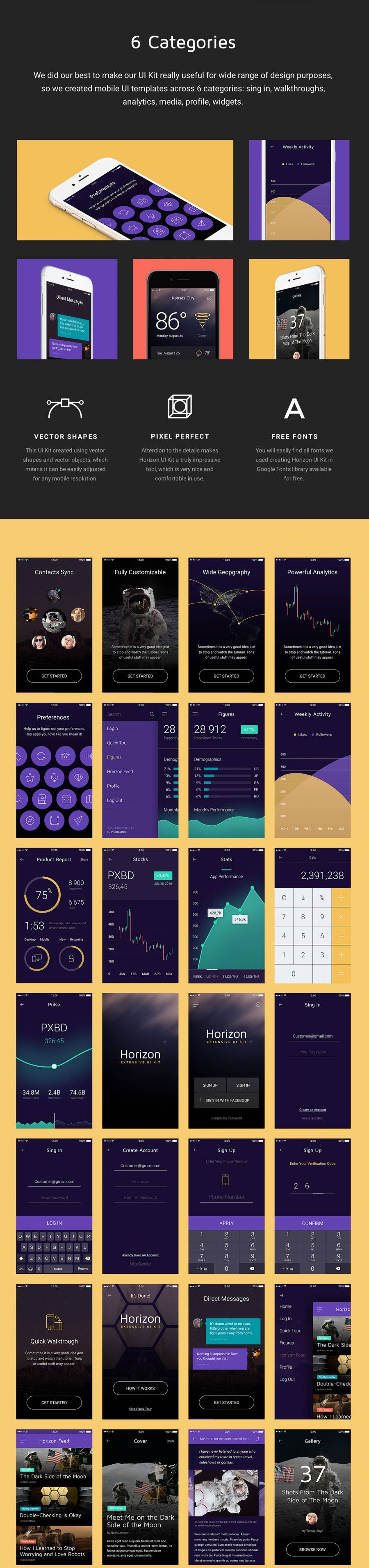 Horizon UI Kit的高级套件,包括50个iOS移动模板