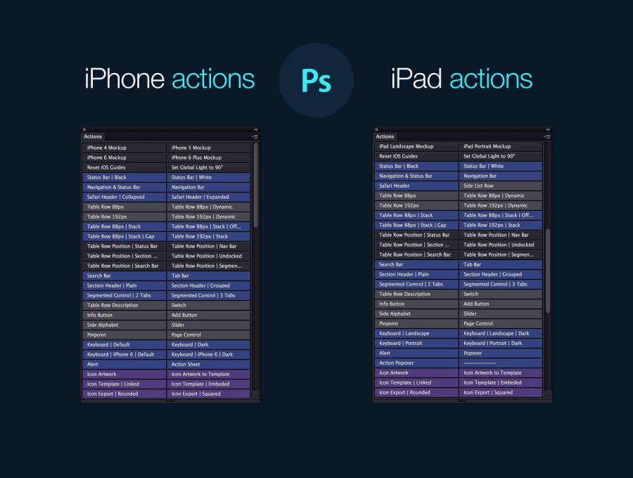 旨在简化构建iOS模型的过程的一套深思熟虑的Photoshop操作。由于按钮模式,只需点击几下即可构建整个iOS屏幕。创建iOS模型已经变成了坏蛋。