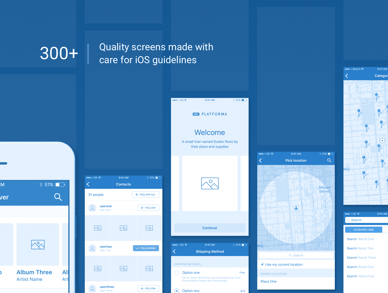 Platforma for iOS是300多个屏幕的集合,制作时注重iOS指南,分为28个流行的内容类别,并为Sketch,Illustrator和Photoshop精心组装。 Platforma的屏幕基于最流行的iOS设计模式,并结合在一个易于使用的库中。节省创作任务的时间,使用Platforma构建线框!与Marvel,Invision,UXPin等在线原型工具完美兼容。