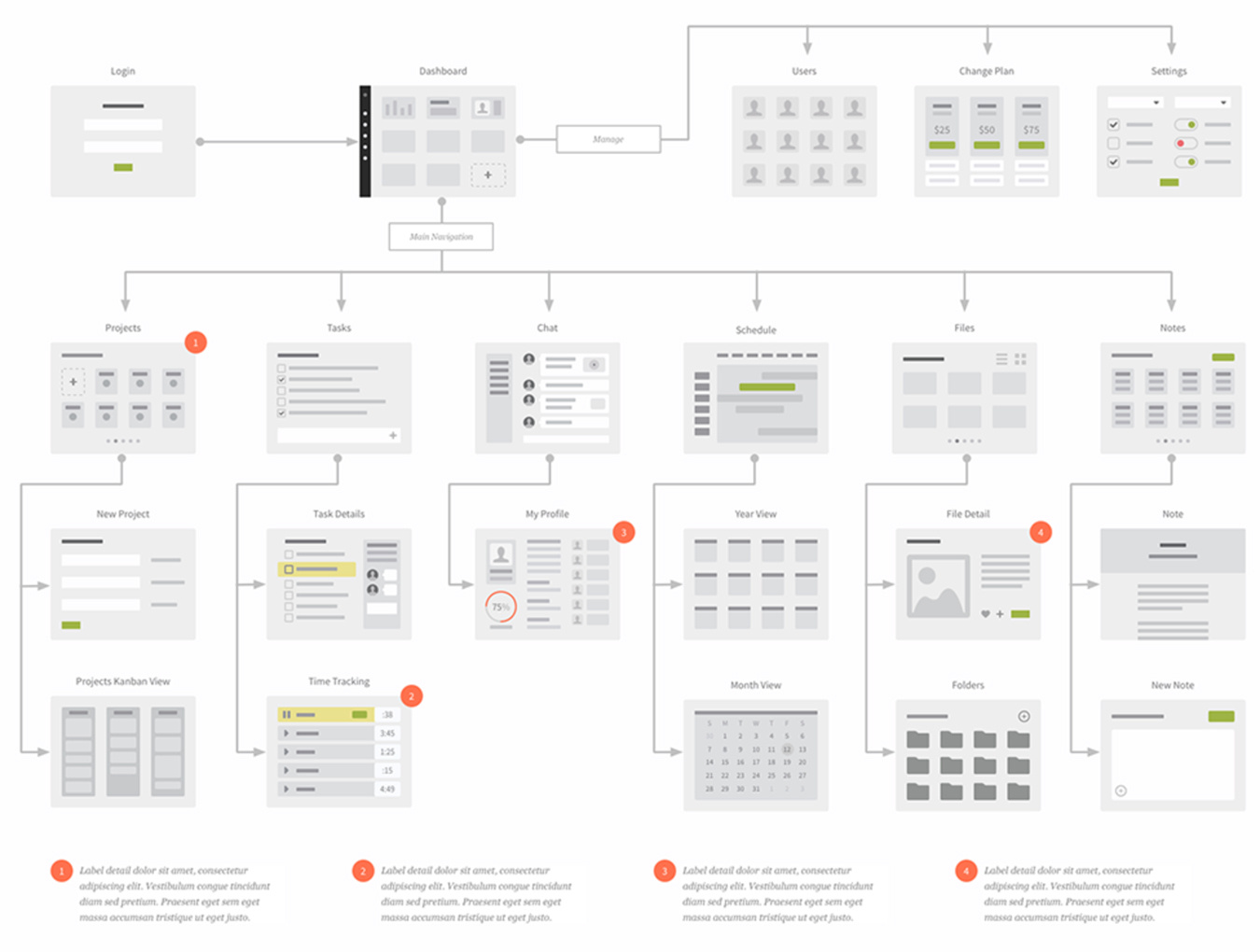 UI Wireflows允许您在一个交付物中显示架构,基本页面布局,内容和流程。该套件拥有120个屏幕和100个额外的UI和流程图元素,融合了流程图和线框,可帮助您清楚地向客户和团队成员传达产品的功能。