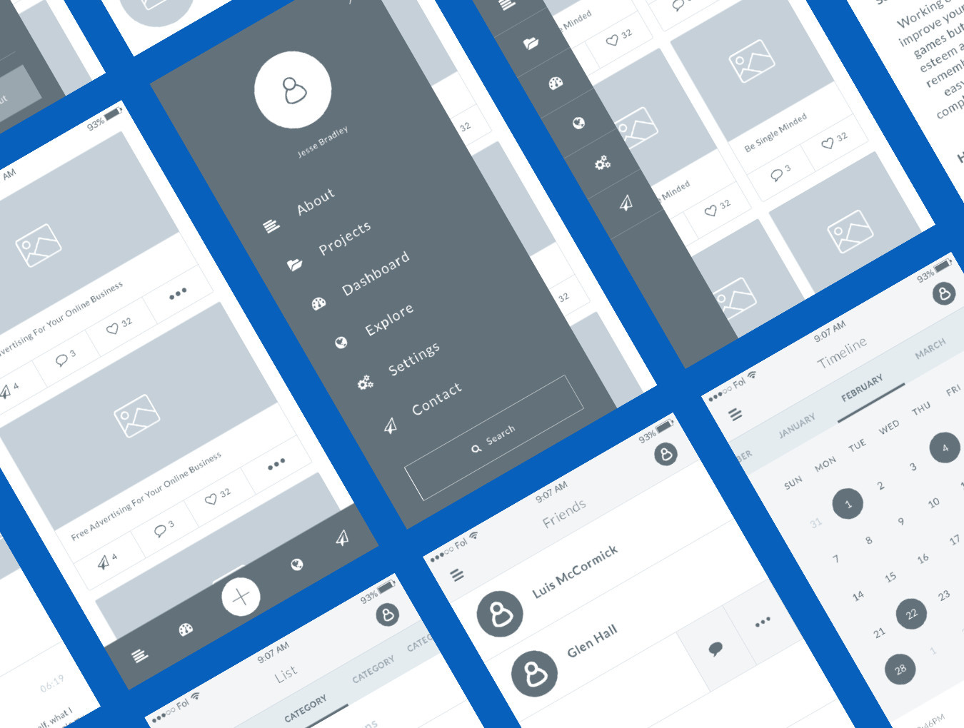 80+屏幕移动线框套件。现场线框套件是一个非常大的用户交互套件,可以帮助您轻松地在Sketch和Illustrator中设计整个移动应用程序。适用于Sketch 3.7和Illustrator CS5 - CC