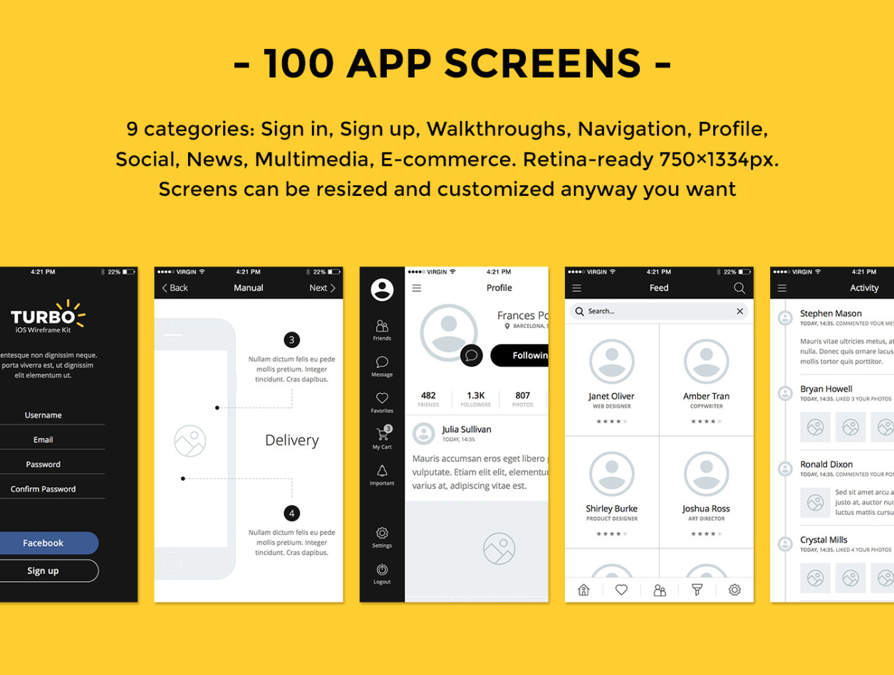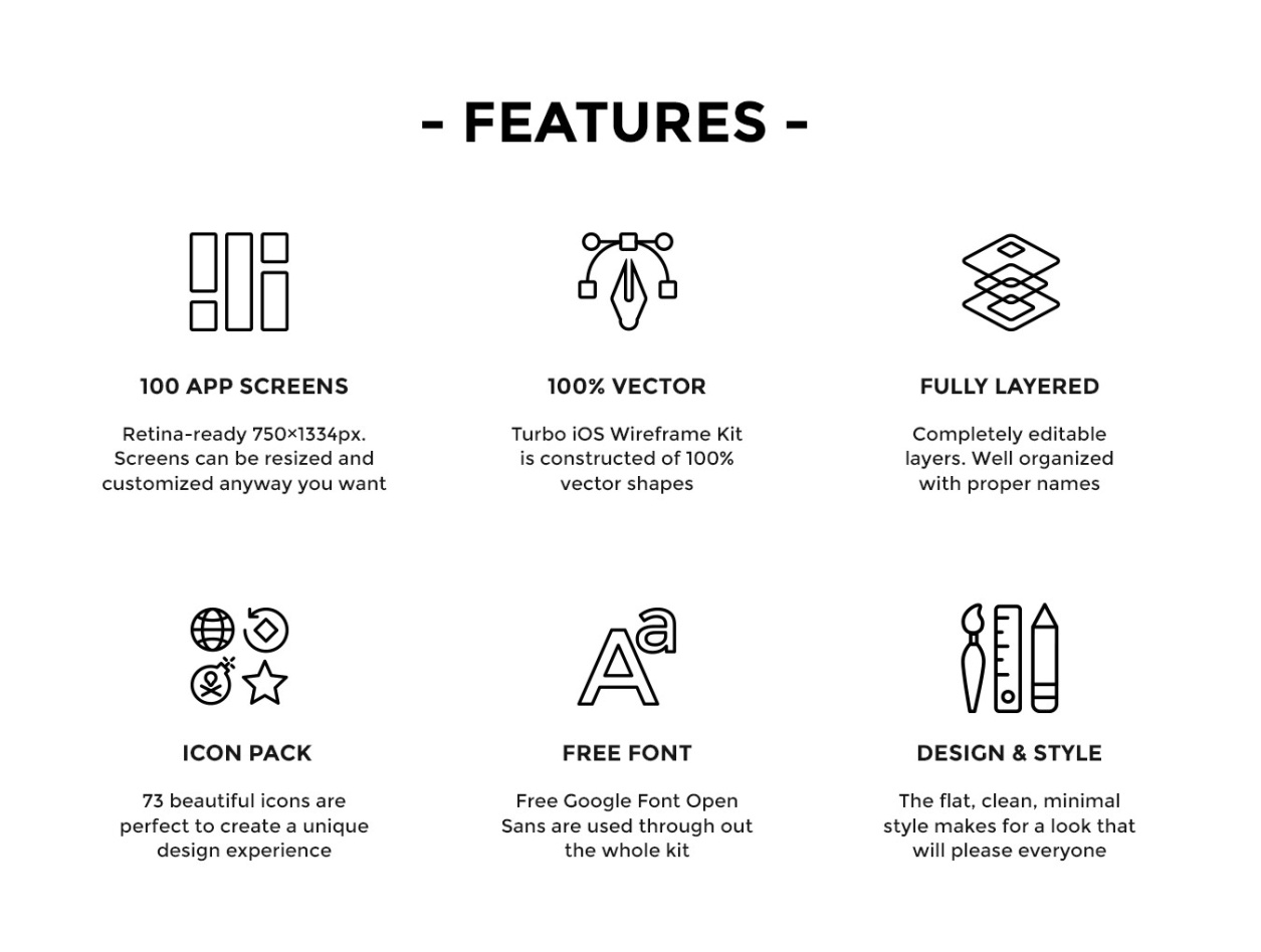 100屏幕iOS线框套件,Turbo iOS线框套件
