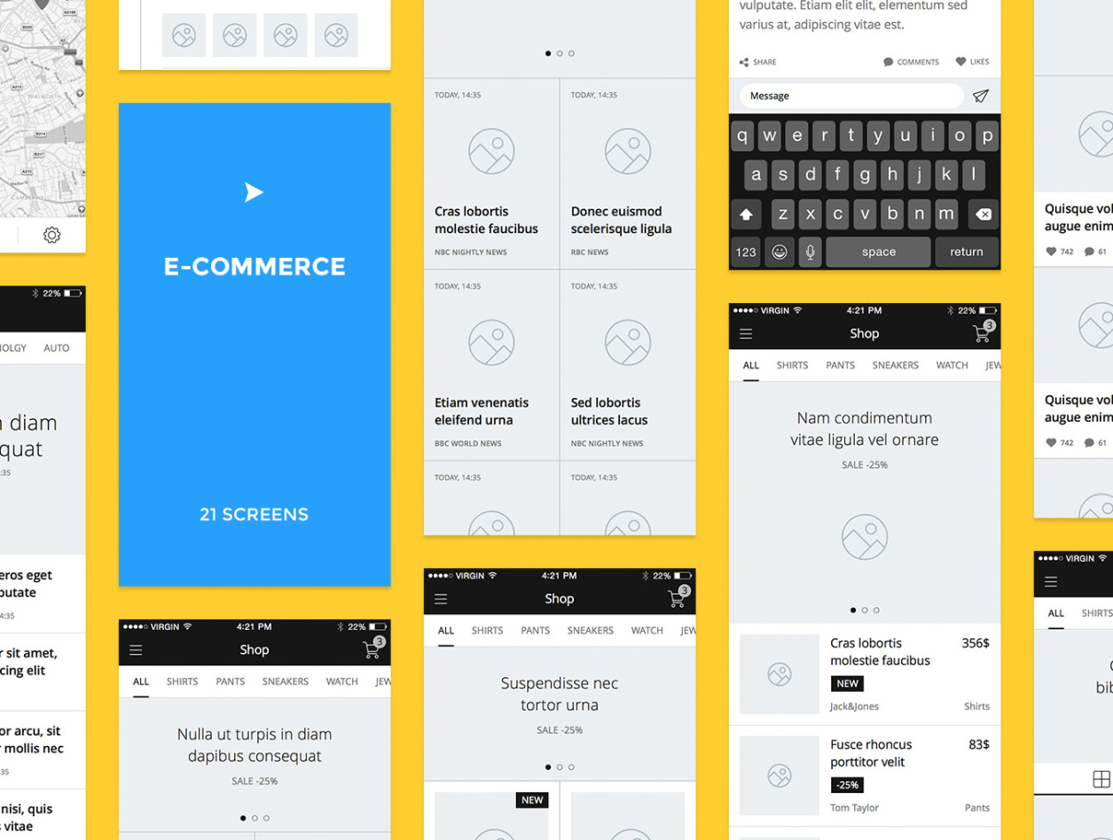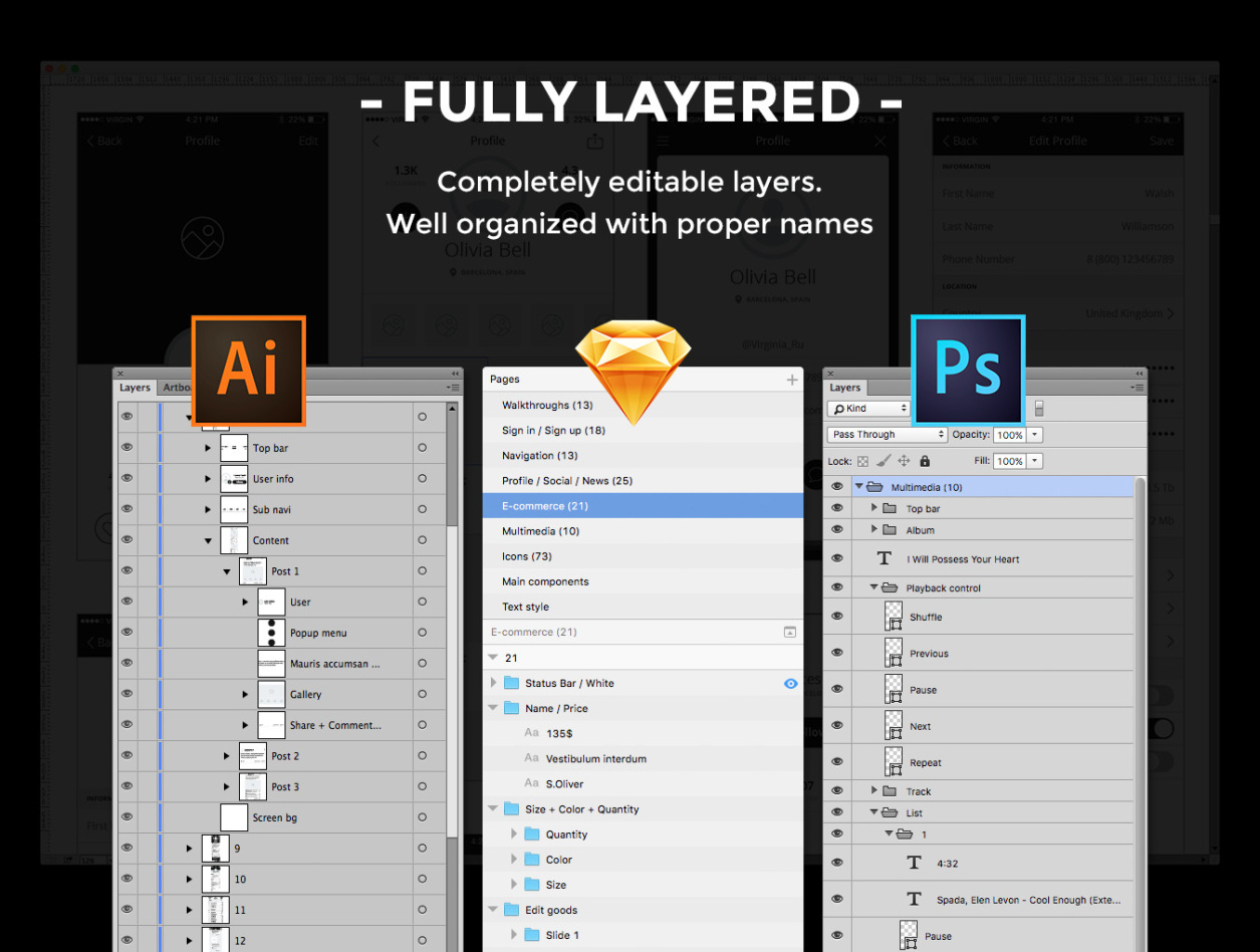 专业制作,可快速轻松地进行原型制作。包括100个屏幕,9个类别:登录,注册,演练,导航,个人资料,社交,新闻,多媒体,电子商务,还有主要组件,文本样式,70多个矢量图标,可以帮助您构建任何移动应用程序或网站的移动版本轻松。您可以将它们用于任何移动平台。