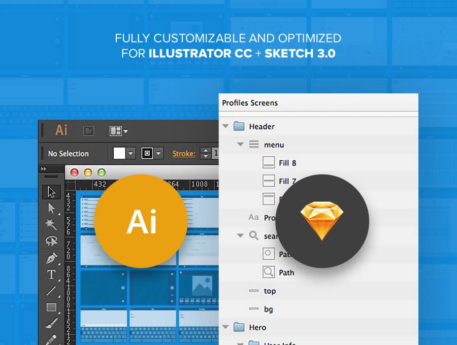 蓝图样式的70多个模板和300个UI元素,适用于Web,平板电脑和移动设备,有助于加快用户体验工作流程。以Illustrator和Sketch格式发送。