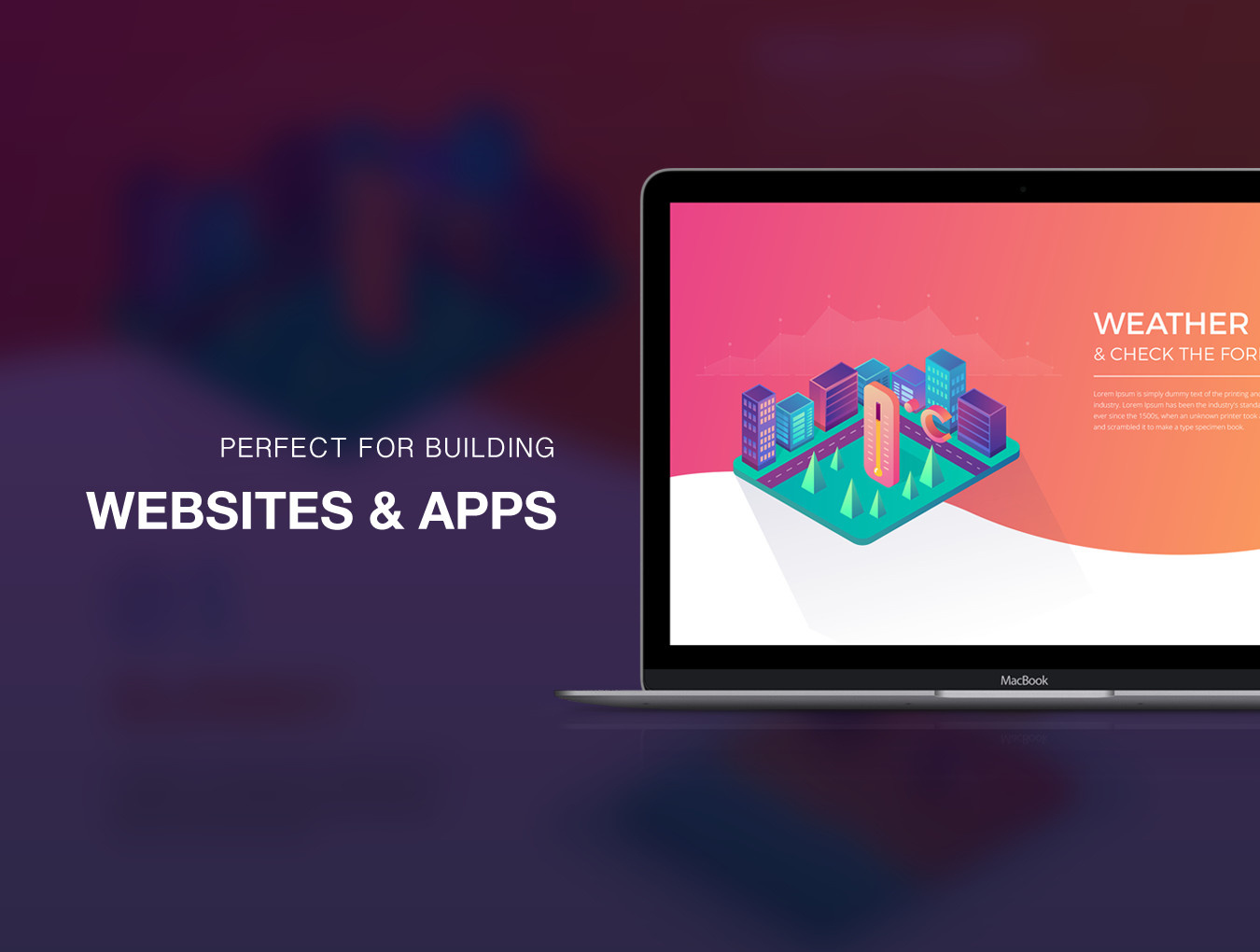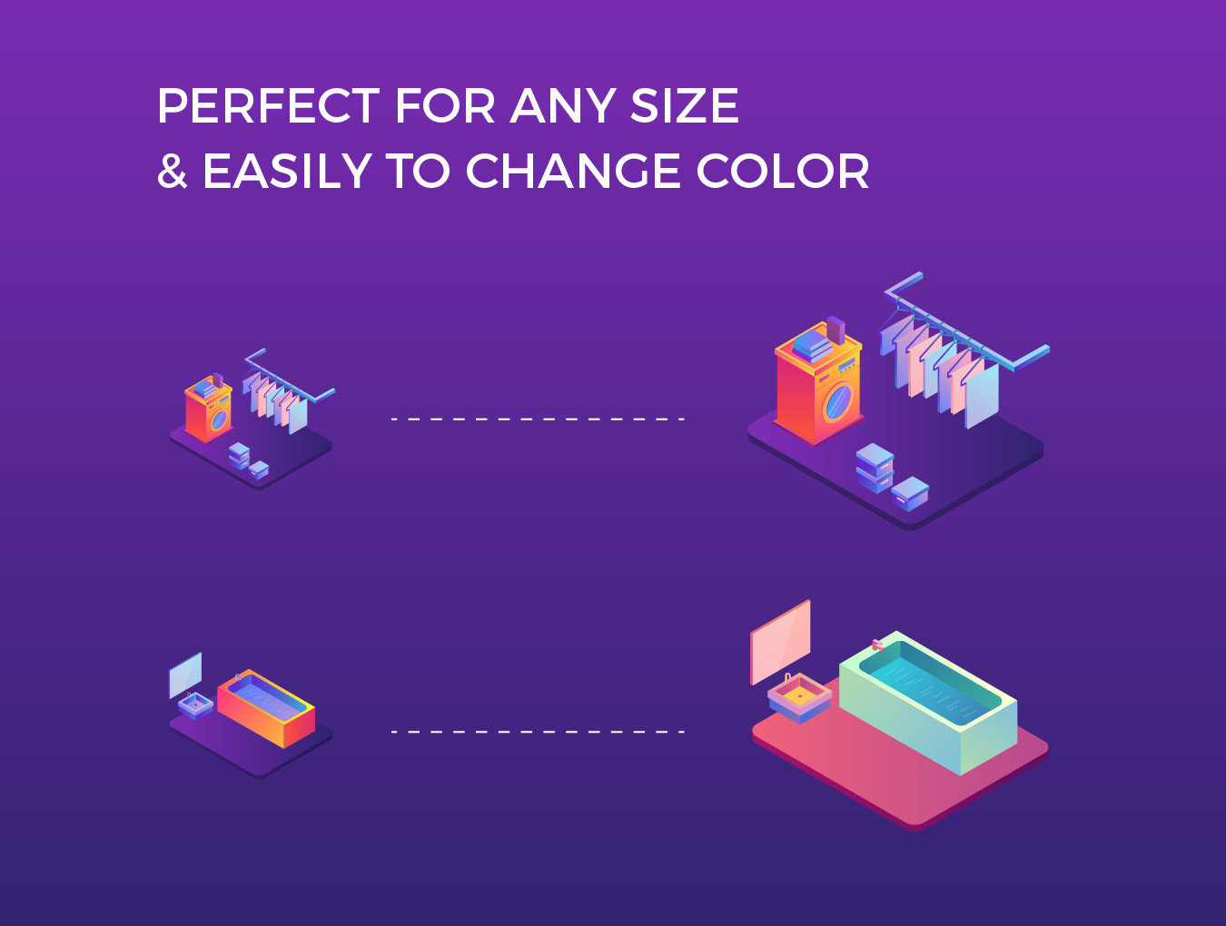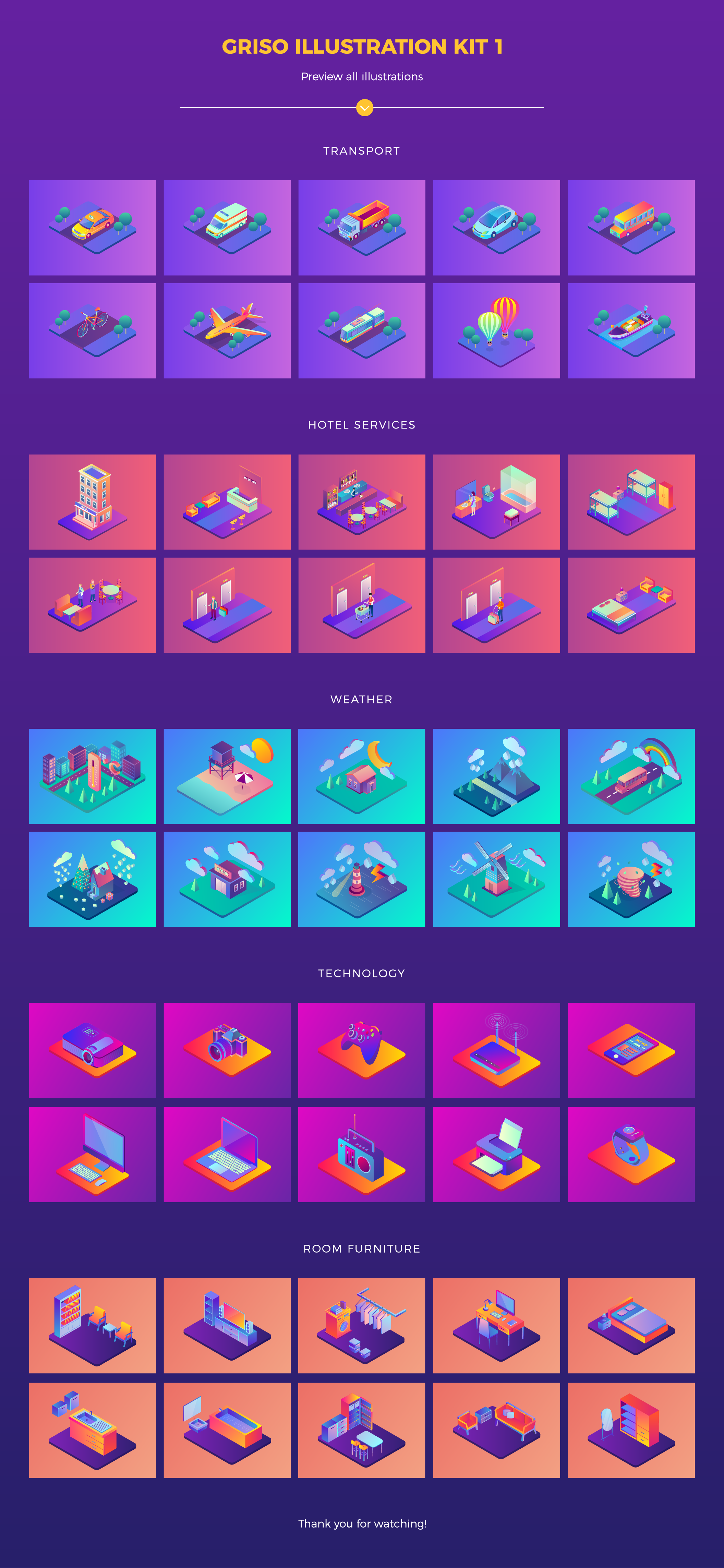 50插图与伟大的等距风格和渐变颜色,Griso插图套件1
