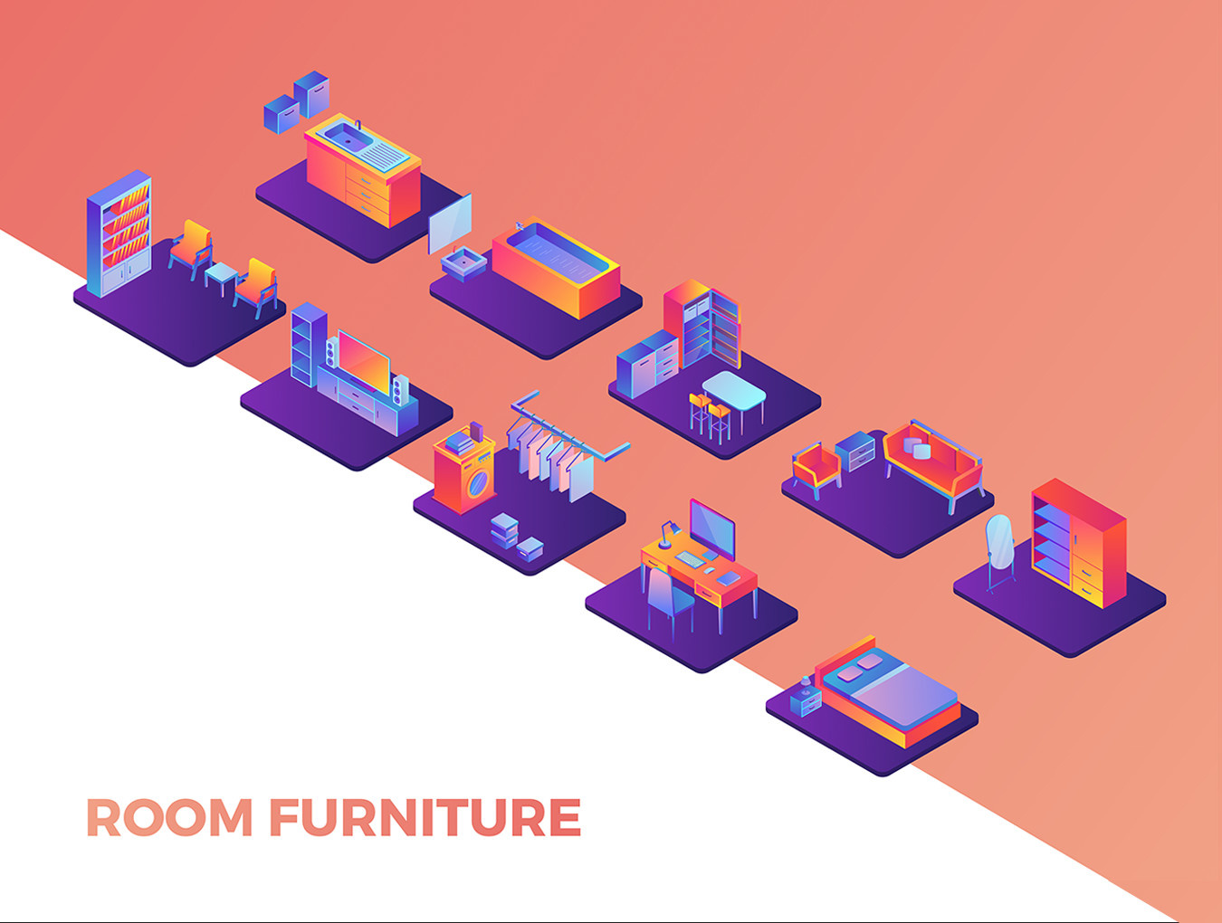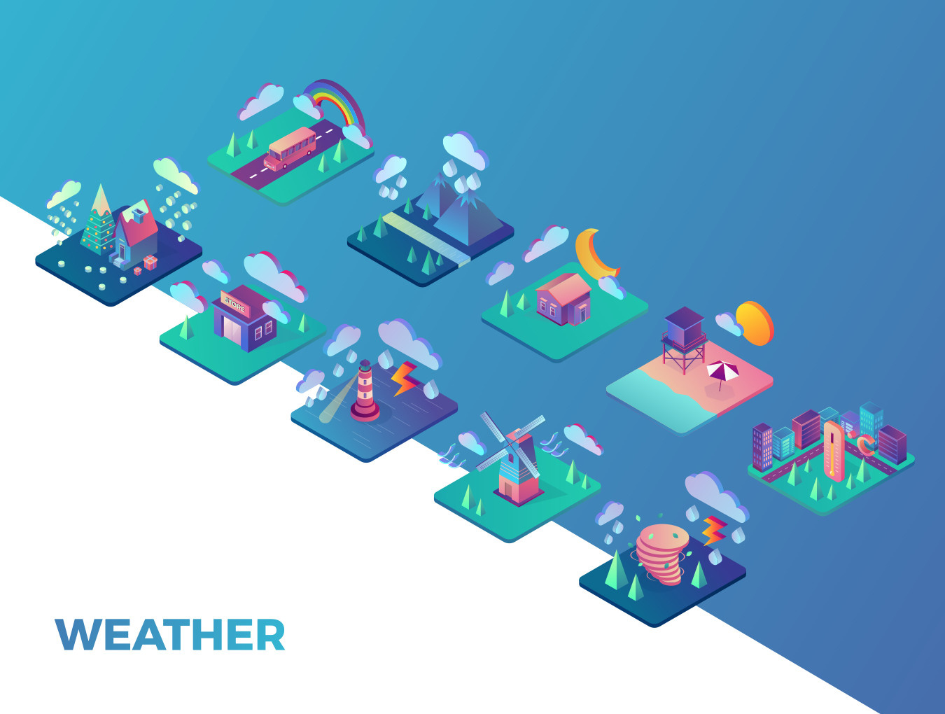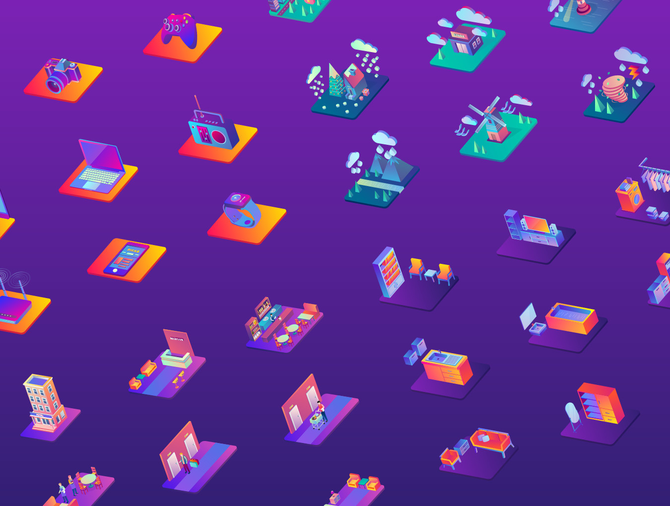 50插图与伟大的等距风格和渐变颜色,Griso插图套件1