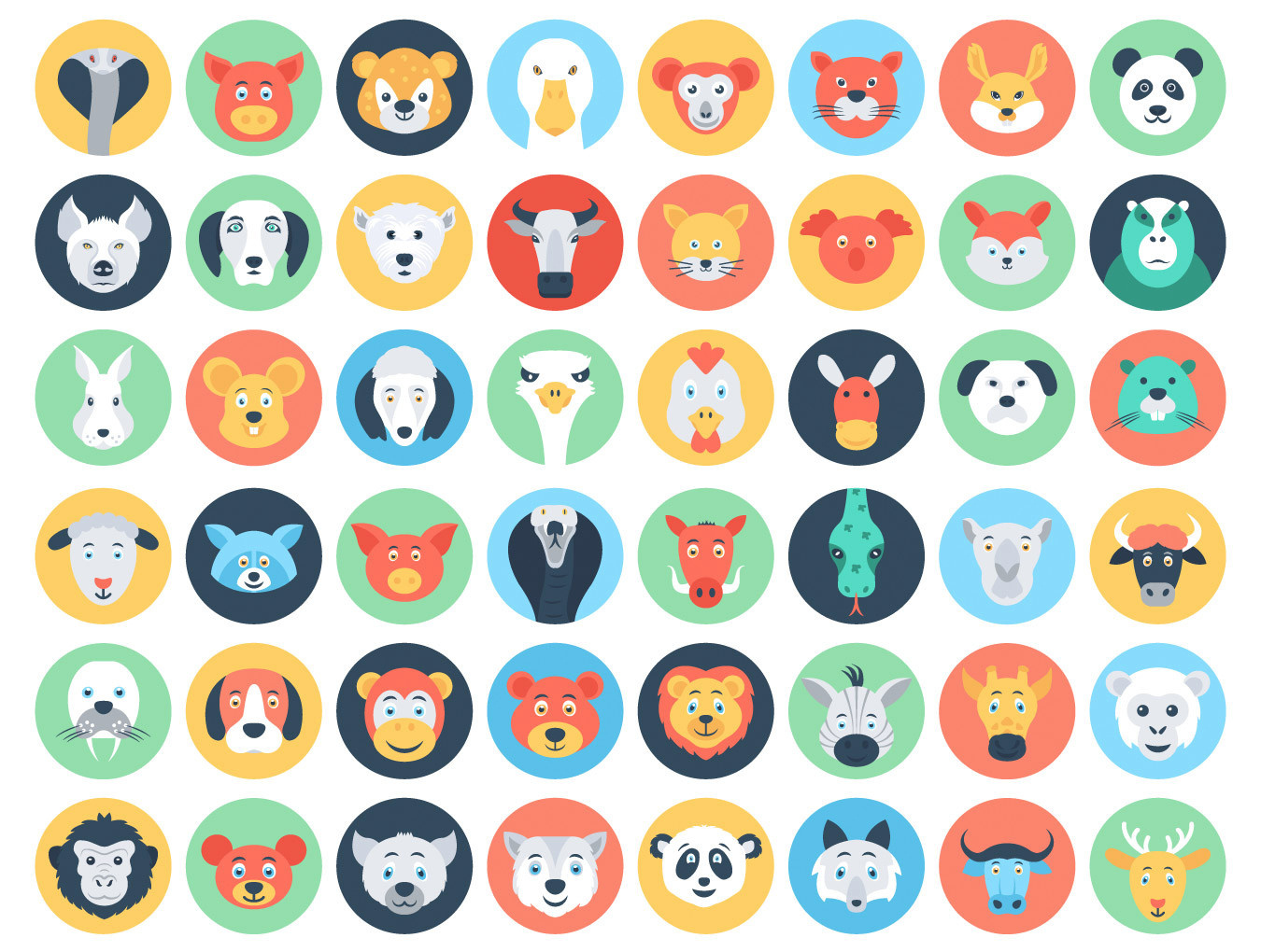14款炫彩扁平化动物海豚骏马狗牛羊鸡logo标志图标psd分层设计素材