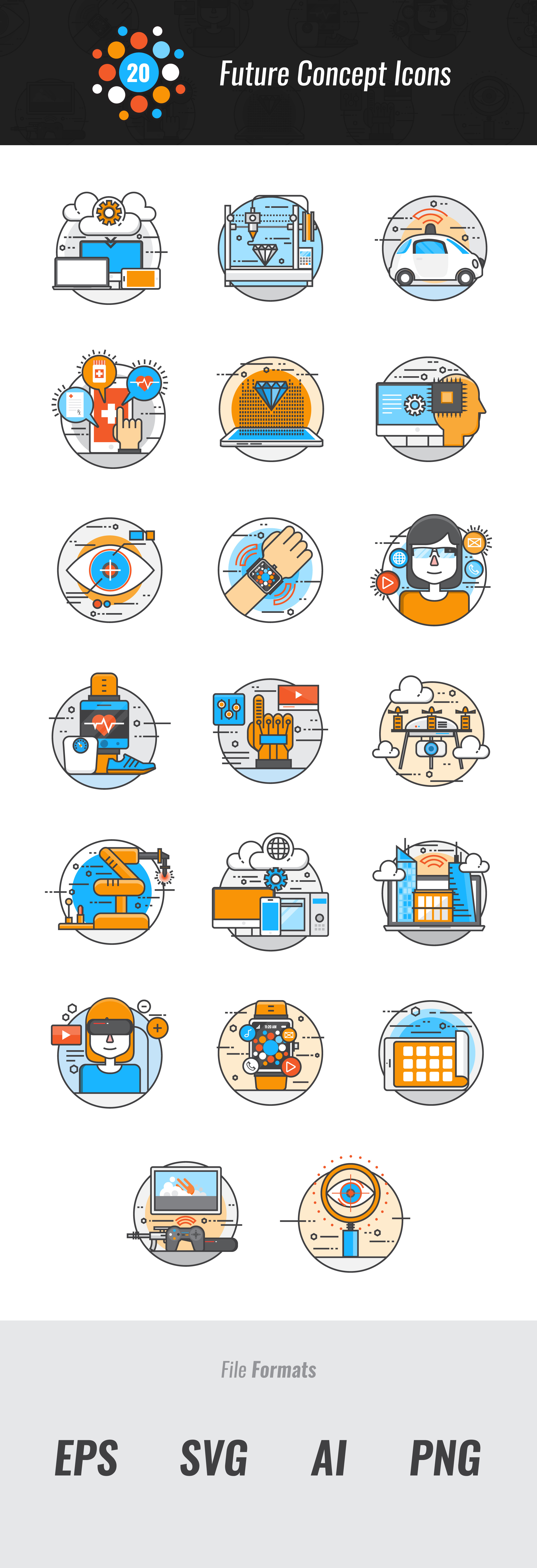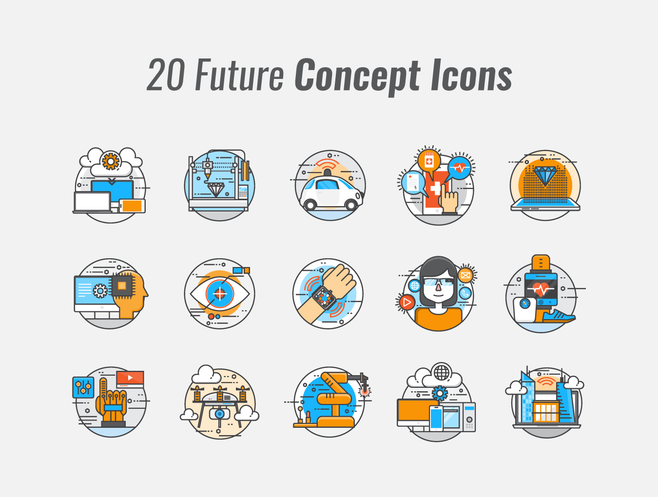 未来将给我们带来什么?没有人确切知道,但我们已经从20个精心设计的图标中捕获了20个未来趋势,从虚拟现实到无人机到机器人。写一篇关于未来趋势的博客文章?这套装置非常适合为这个帖子增添色彩!当然还有很多其他用途,如果你在评论中告诉我们你用它做了什么,我们很乐意。