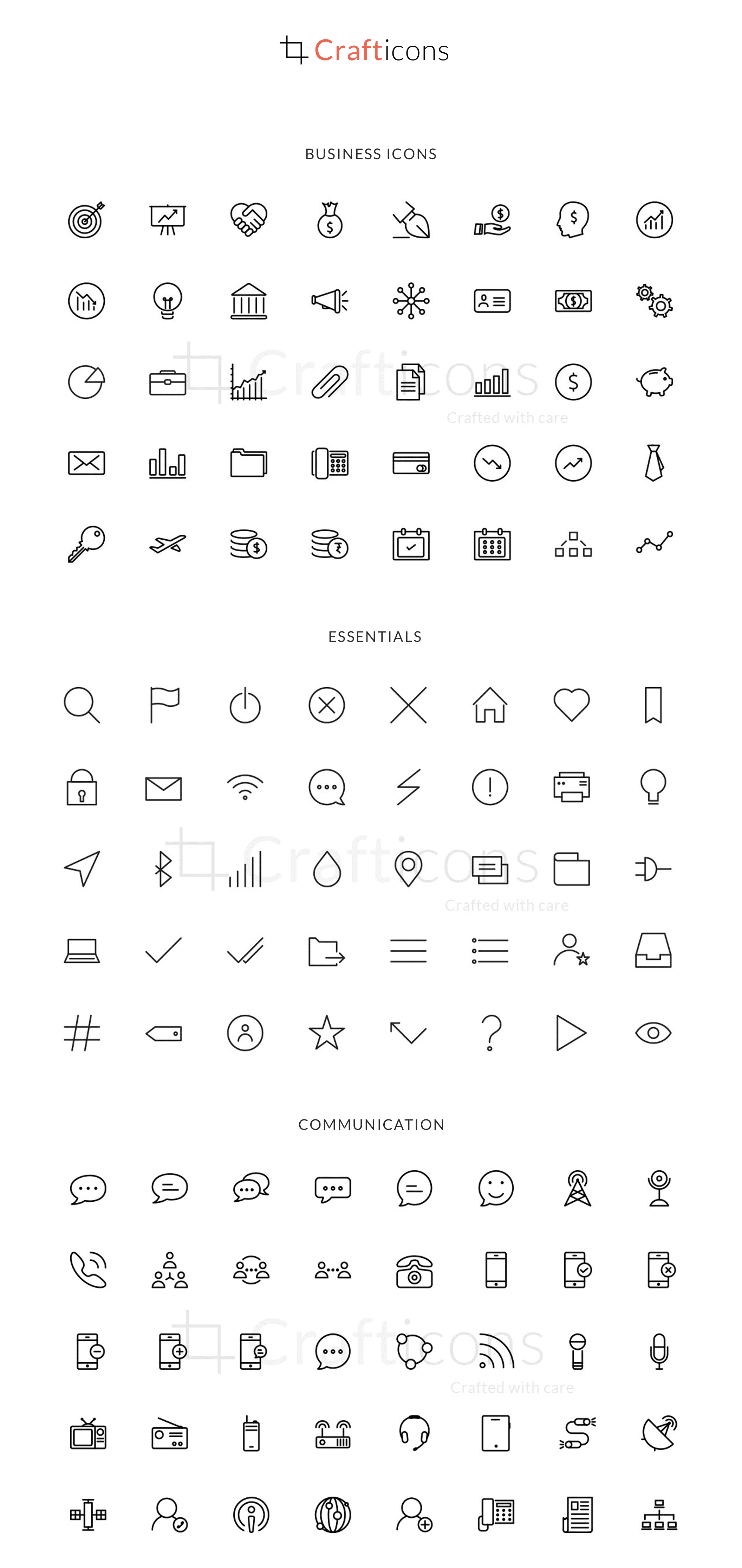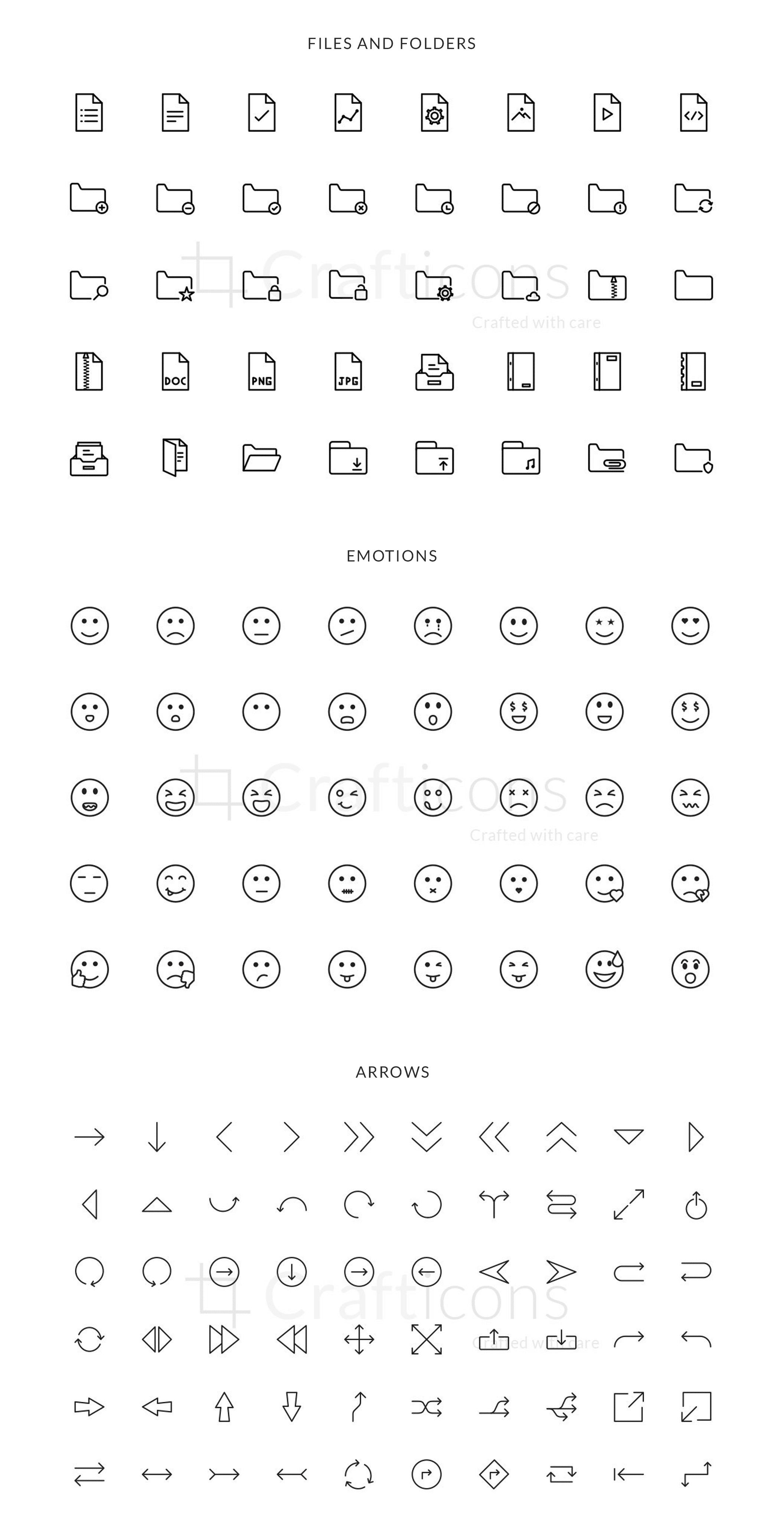 这个巨大的图标集包含440个线图标!这些图标专为满足当前设计趋势而设计,可帮助您扩展项目。借助可自定义的笔触粗细和矢量基础,您可以根据项目自定义图标。工艺线图标包括10个类别;商业,媒体,金融,食品,情感,要点,教育,箭头等。