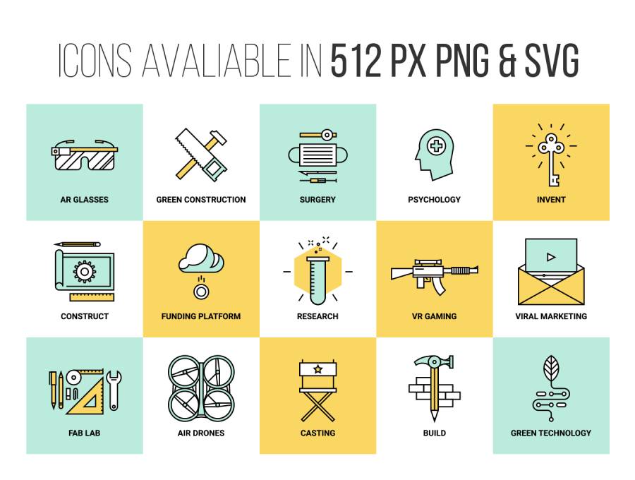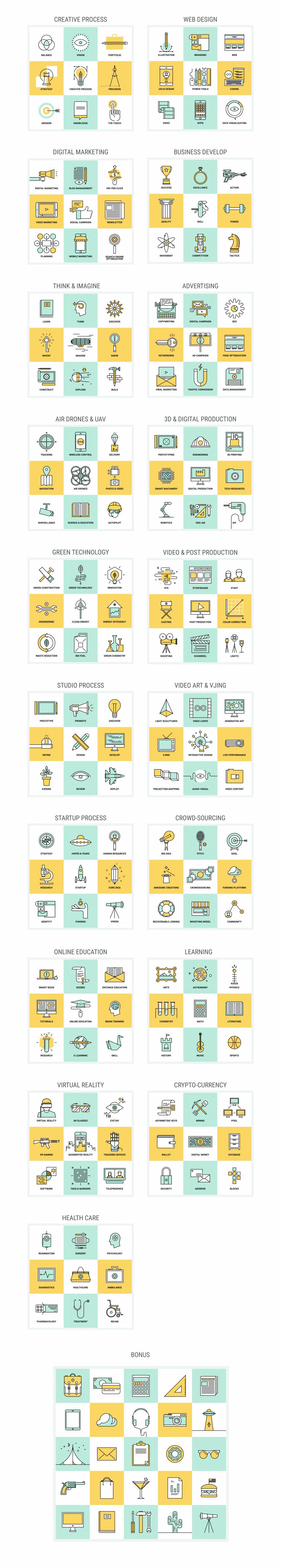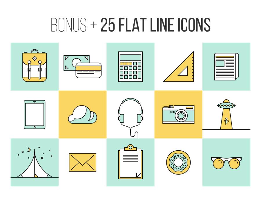 一个统一的设计风格创建一个大包的平线插图。所有插图都设置为一个.AI文件以便快速使用,所有图标都以512x512px PNG和SVG文件的形式提供。
