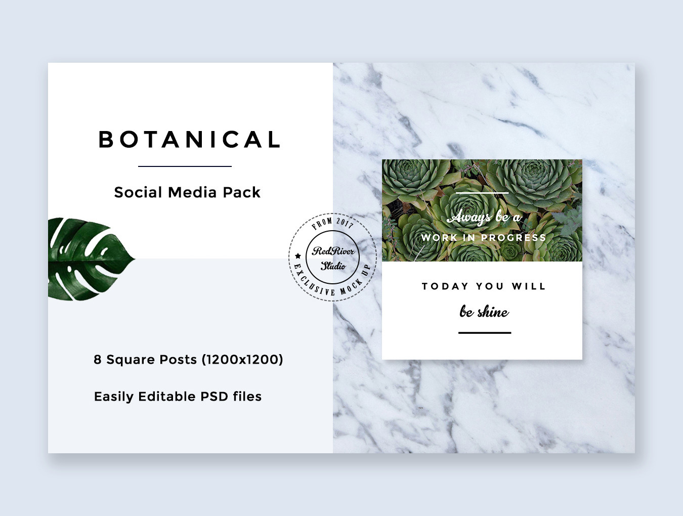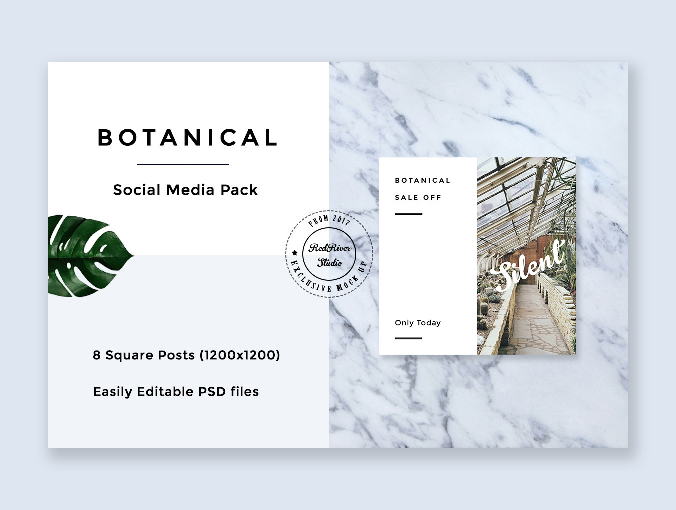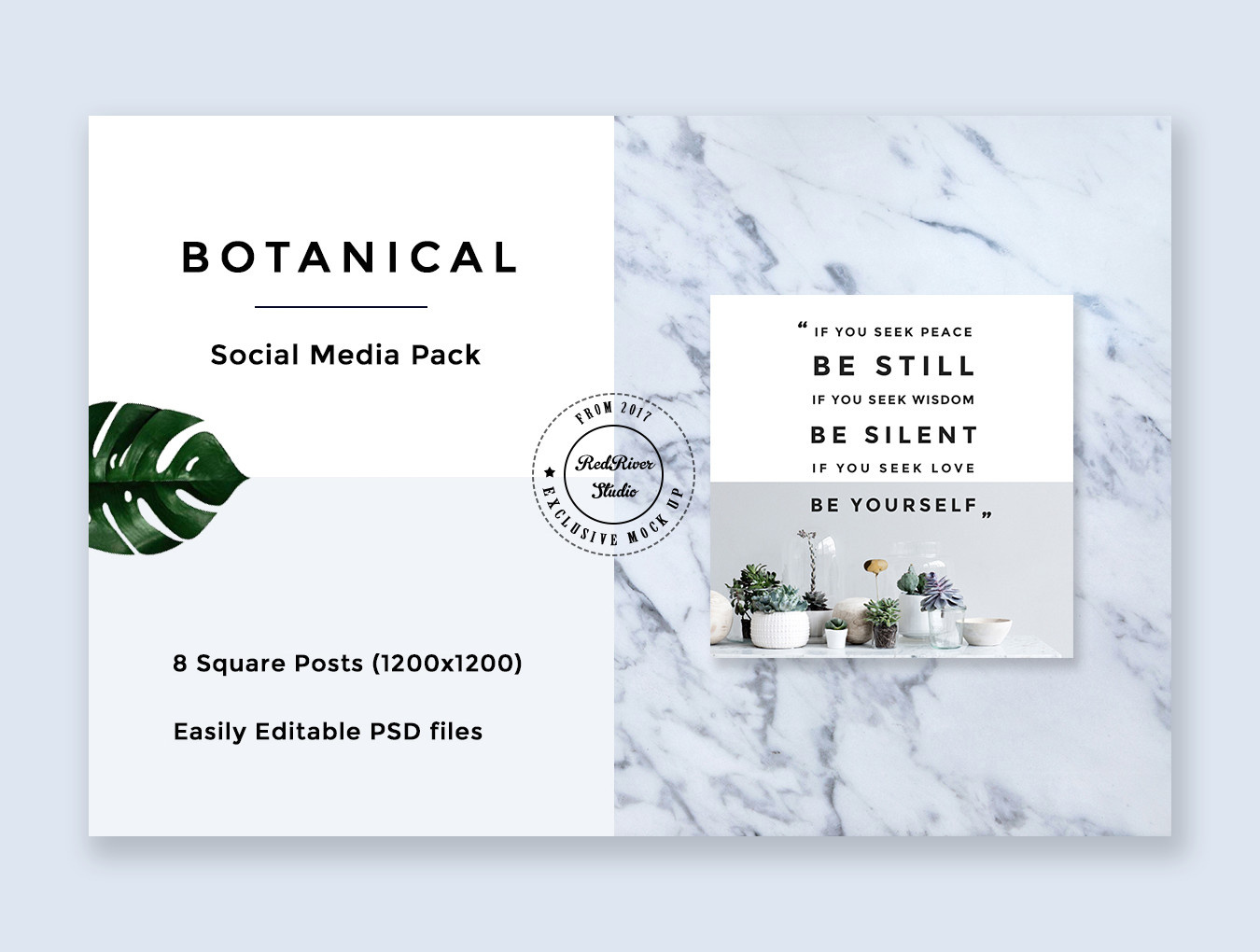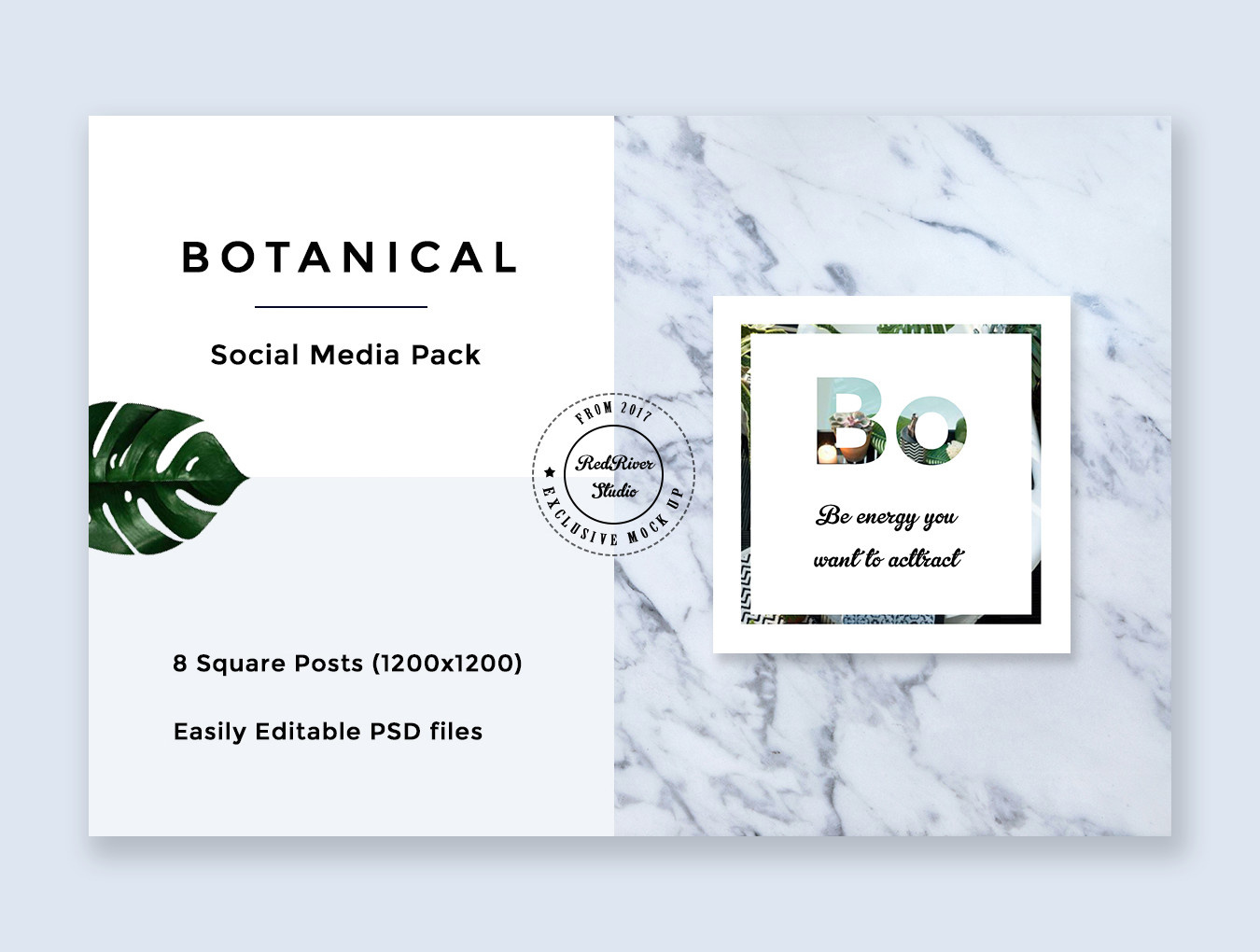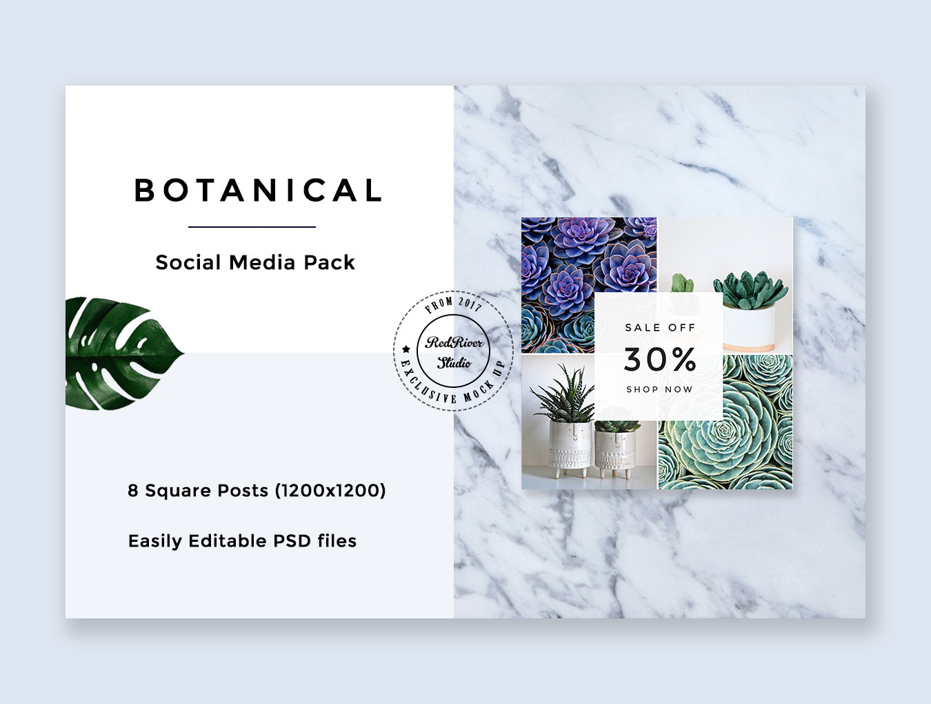 植物社交媒体包是一个乐观和热带的社交媒体包,非常适合时尚博主,美容博主,生活博客,时尚企业,美容师和造型师。在Facebook,Pinterest,Instagram和Twitter上宣传您的帖子,业务,销售和活动,或在您的博客帖子中添加精美图片。模板有三种尺寸,Instagram 1200x1200px,Facebook和Twitter 1200x630px,以及Pinterest 735x1102px。所有模板均在Photoshop中设计,请注意所有图片仅供演示之用,不包含在产品中。