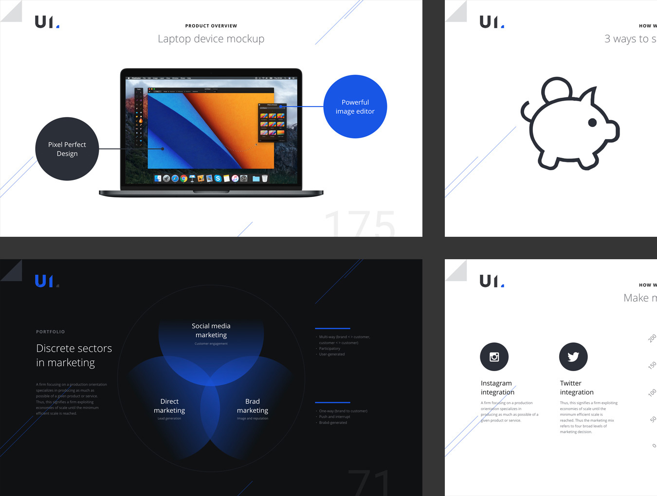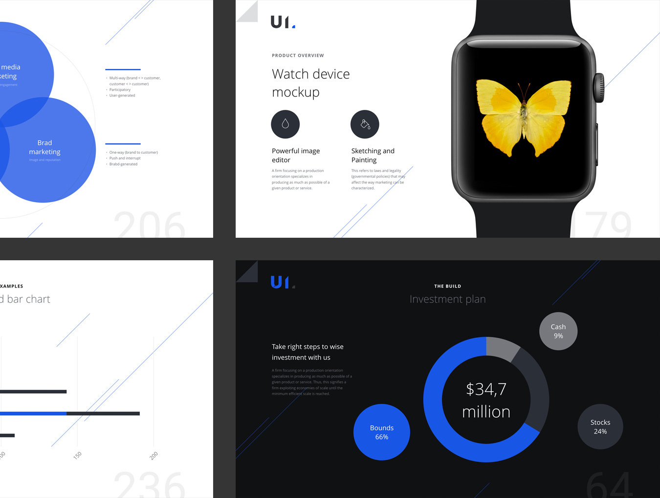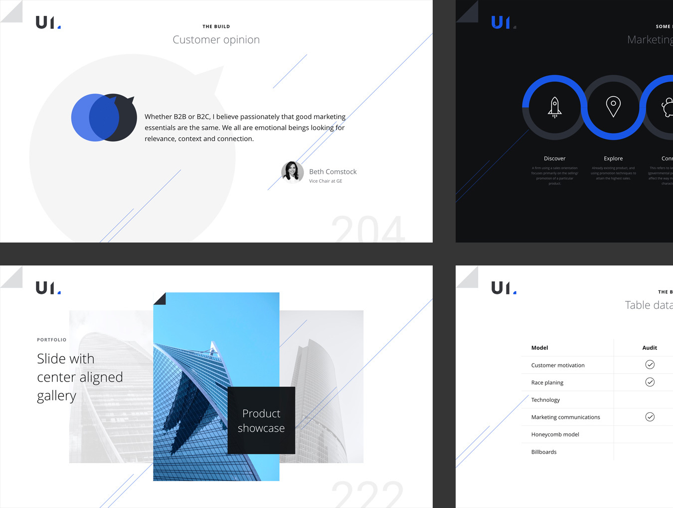 使用BUILD Keynote演示模板让您的产品令人印象深刻,令人难忘。 BUILD模板还包含幻灯片布局,旨在涵盖Marketing Mix - 4Ps(价格,产品,促销和地点),时间表,市场分析和其他关键要素。 此模板包含120种幻灯片,分为2种配色方案(黑暗和浅色)。我们在模板中包含了幻灯片的几个变体,例如:团队,投资组合,应用程序展示,图表,时间表,里程碑等。