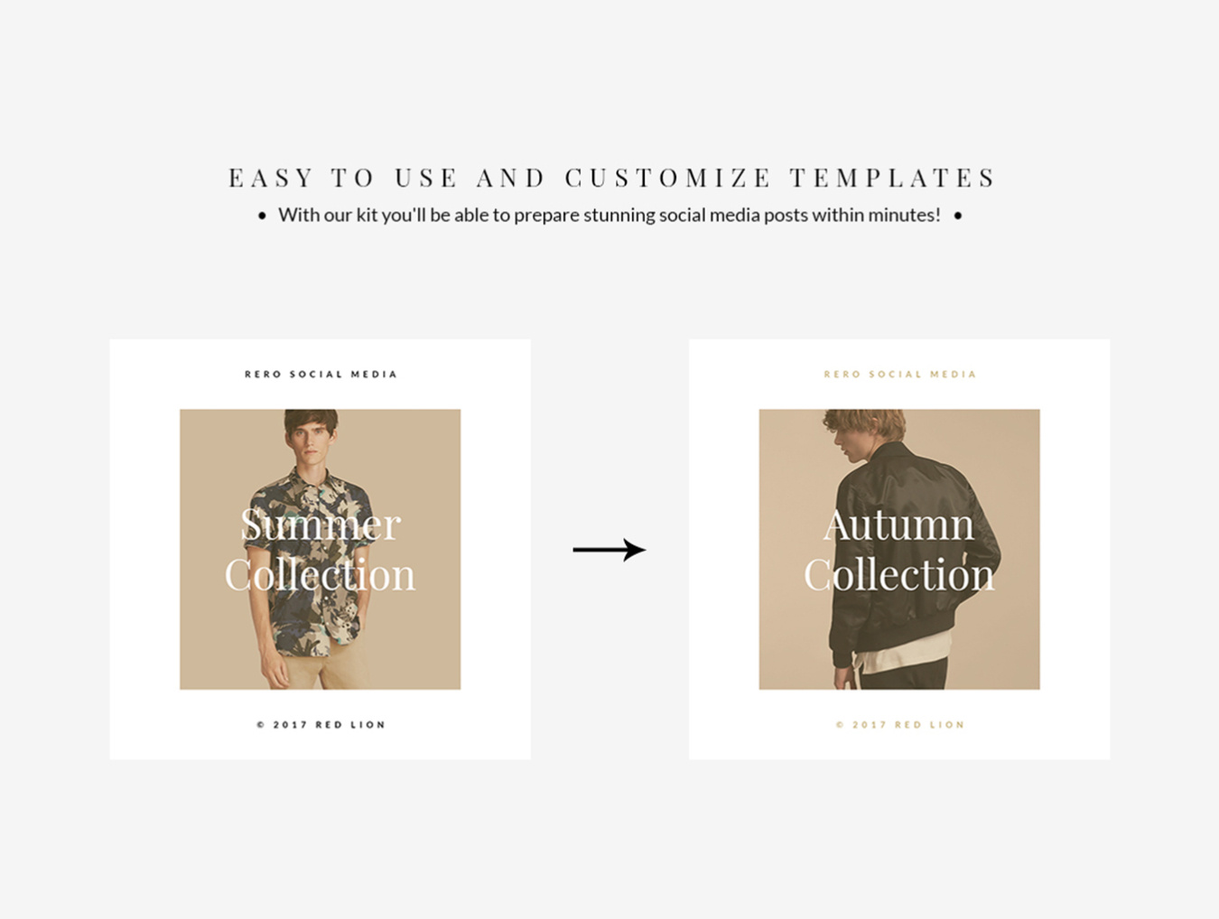 15个独特且可自定义的社交媒体模板,Rero Fashion社交媒体套件