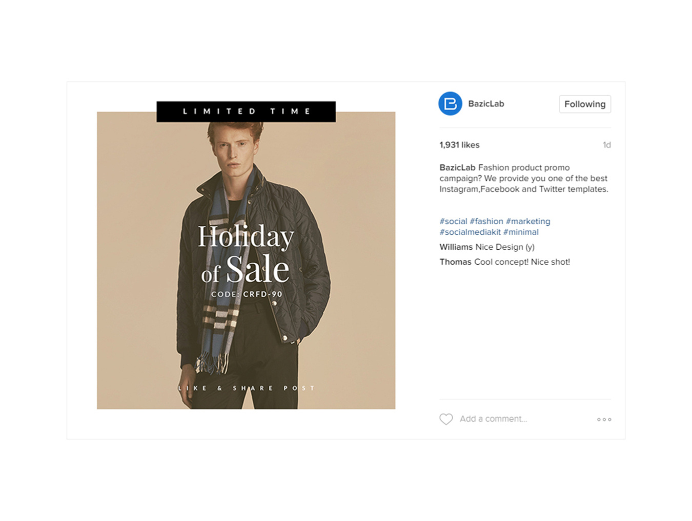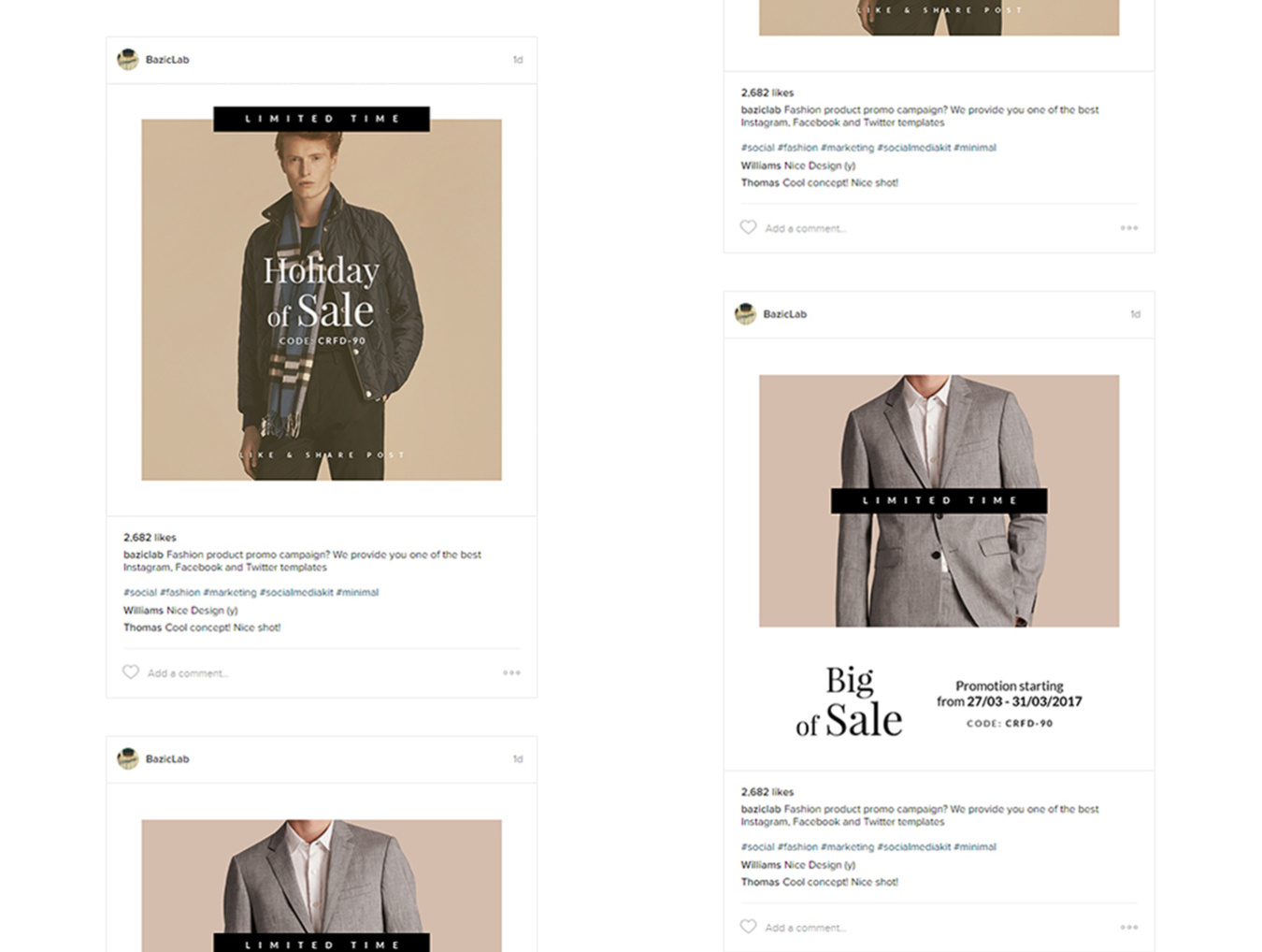 有时尚产品促销活动?我们为您提供最好的Instagram,Facebook和Twitter模板之一。这组模板为您提供了一种新的方式,使您的产品在Instagram,Facebook和Twitter上更加一流。你还在等什么?所有主要元素都可以在Photoshop中轻松编辑和自定义。