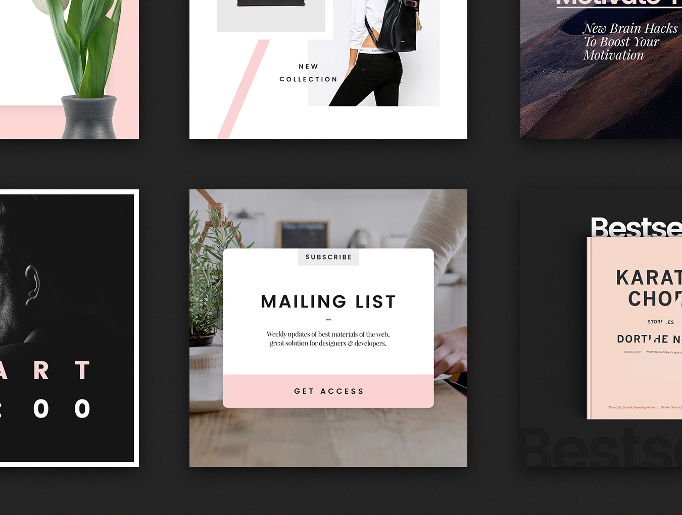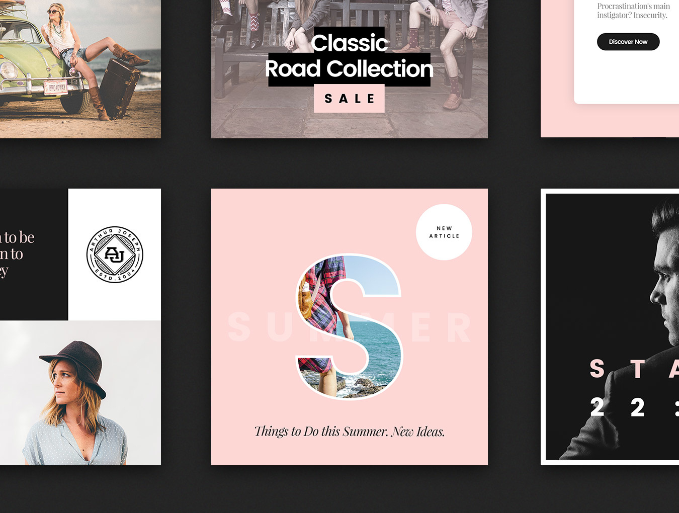 Social Media Booster Kit的第4卷为您带来全新的风格:新颜色,网格和字体。您可以通过令人印象深刻的,出色的出版物来填充您的社交媒体。该软件包包括15个本地设计用于Instagram,Twitter和Facebook的模板。它们中的每一个都易于编辑和自定义,您只需通过智能对象将图像替换为您的作品并添加副本即可。而已!这套装置将满足您的个人或商业需求:适合博主,时尚和零售品牌,杂志等等!