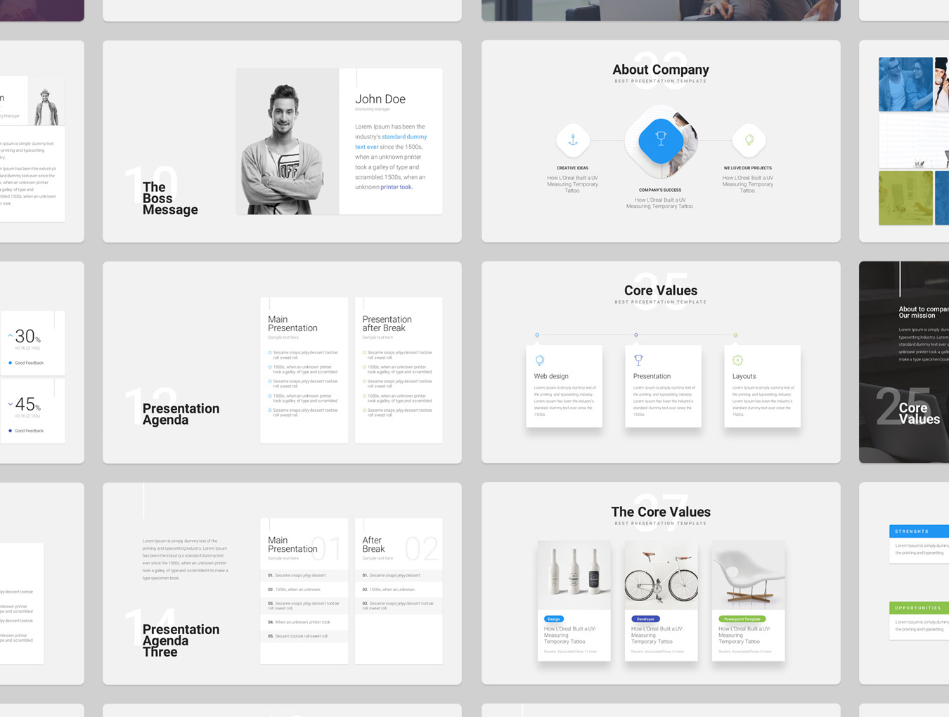 适用于PowerPoint,Keynote幻灯片的强大且富有创意的幻灯片演示文稿。它配备了220多个独特的演示幻灯片,具有出色的专业布局和创意设计。易于更改颜色,修改形状,文本和图表。所有形状都是可编辑的。图标和10种颜色版本包括在内。