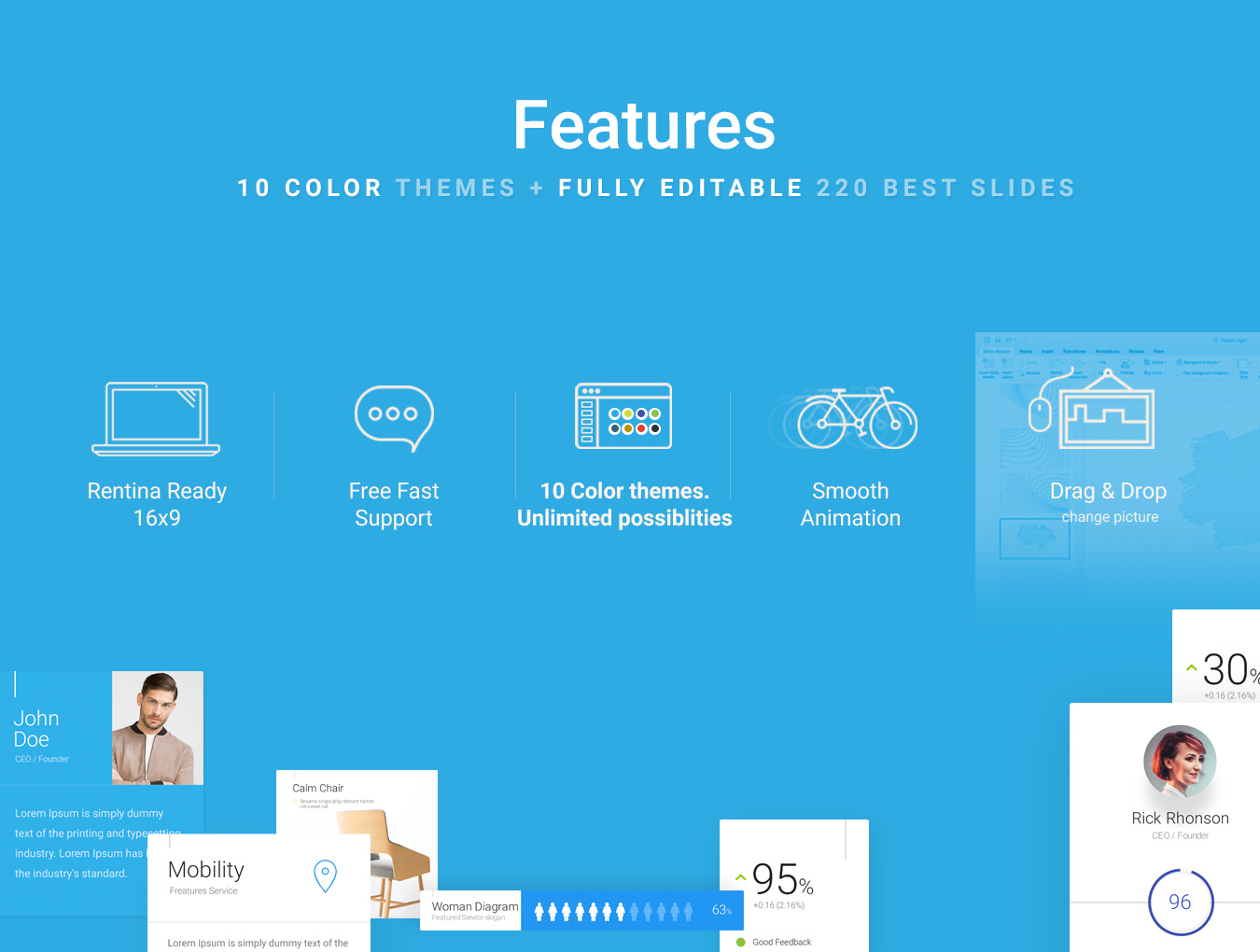 220独特的主题演讲和Powerpoint演示,Material Presentation UI KIT