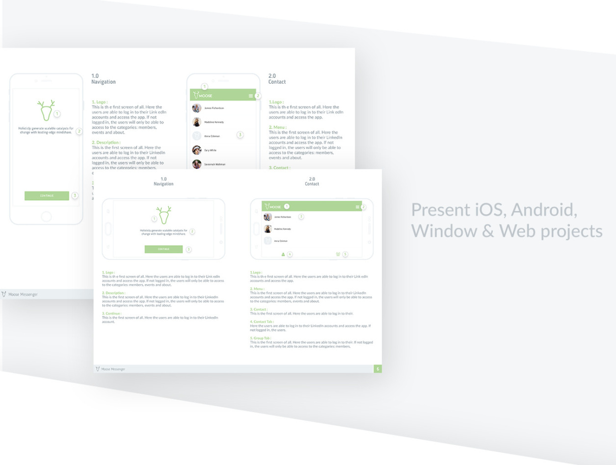 Moose - 移动和Web项目的终极文档工具包。 Moose包括品牌模板,Userflow和所有流行的设备模板,可以创造性地呈现iOS,Android,Mac,Window和Web项目。
