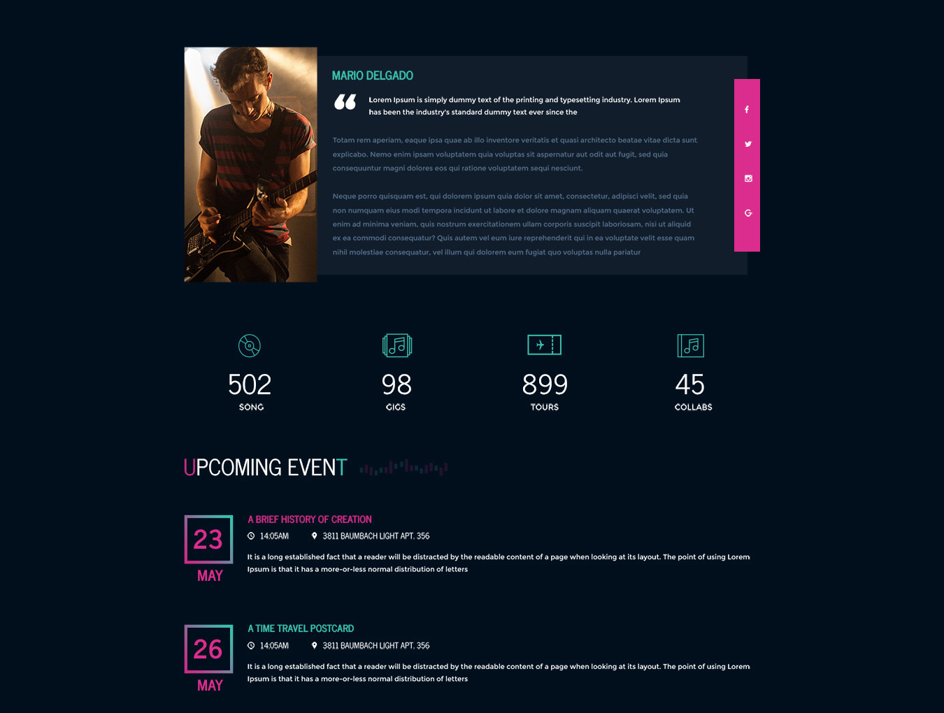 Steve Cadey非常适合音乐乐队,音乐家,DJ,制作人,标签或活动和节日的组织者,他们希望为乐队或团队成员创建博客或作品集。此模板采用最新的趋势样式设计,例如在悬停时使用平面按钮的发光效果,令人惊叹的高对比度颜色,非常适合音乐网站。