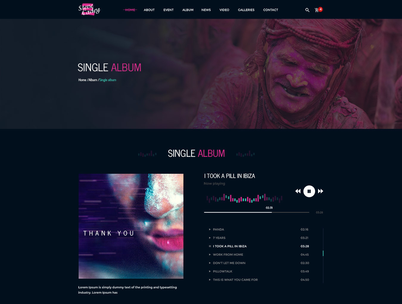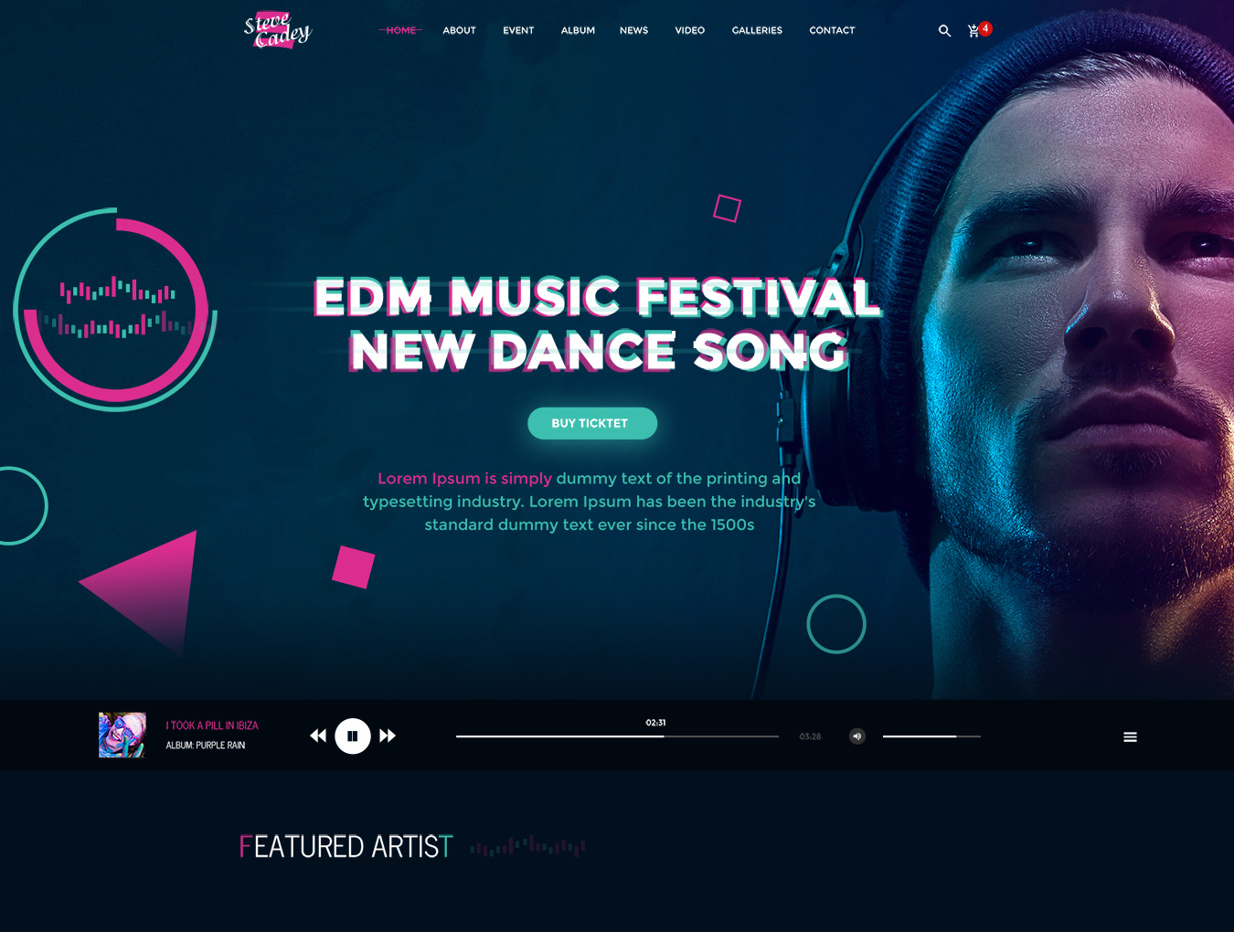 核心功能:凭借干净而现代的PSD电子商务模板,Steve Cadey是您网上商店的绝佳音乐模板。