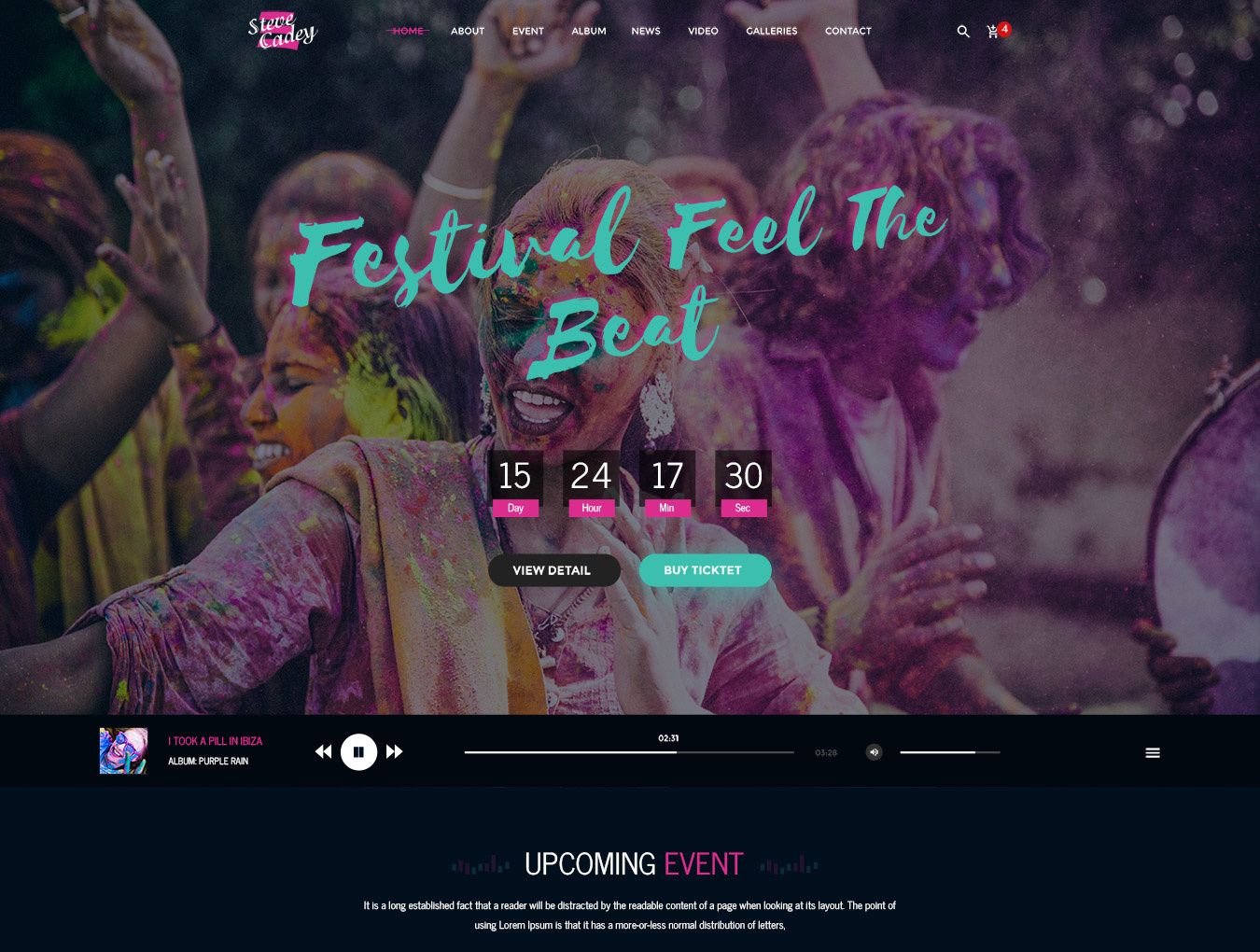 该设计还提供了很酷的功能,如炫耀即将举行的活动,活动门票和销售,特色艺术家,照片画廊,嵌入式视频和音频文件,以及让您为粉丝显示博客或热门新闻和任何其他信息。这就是为什么这个神圣的PSD模板能够用于WordPress,Joomla,Drupal或任何其他CMS的原因。
