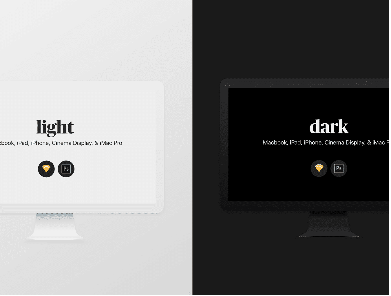 适用于Photoshop和Sketch。,Dark&Light Device Mockups的优雅深色和浅色Apple设备模型