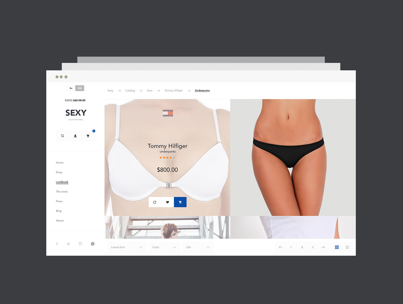 适用于Photoshop,Sexy Lingerie Store的高级清晰简单的电子商务设计