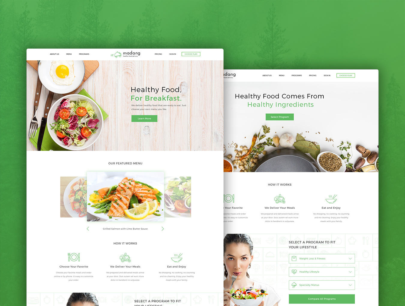 为Photoshop,Madang食物交付设计的健康食物交付模板