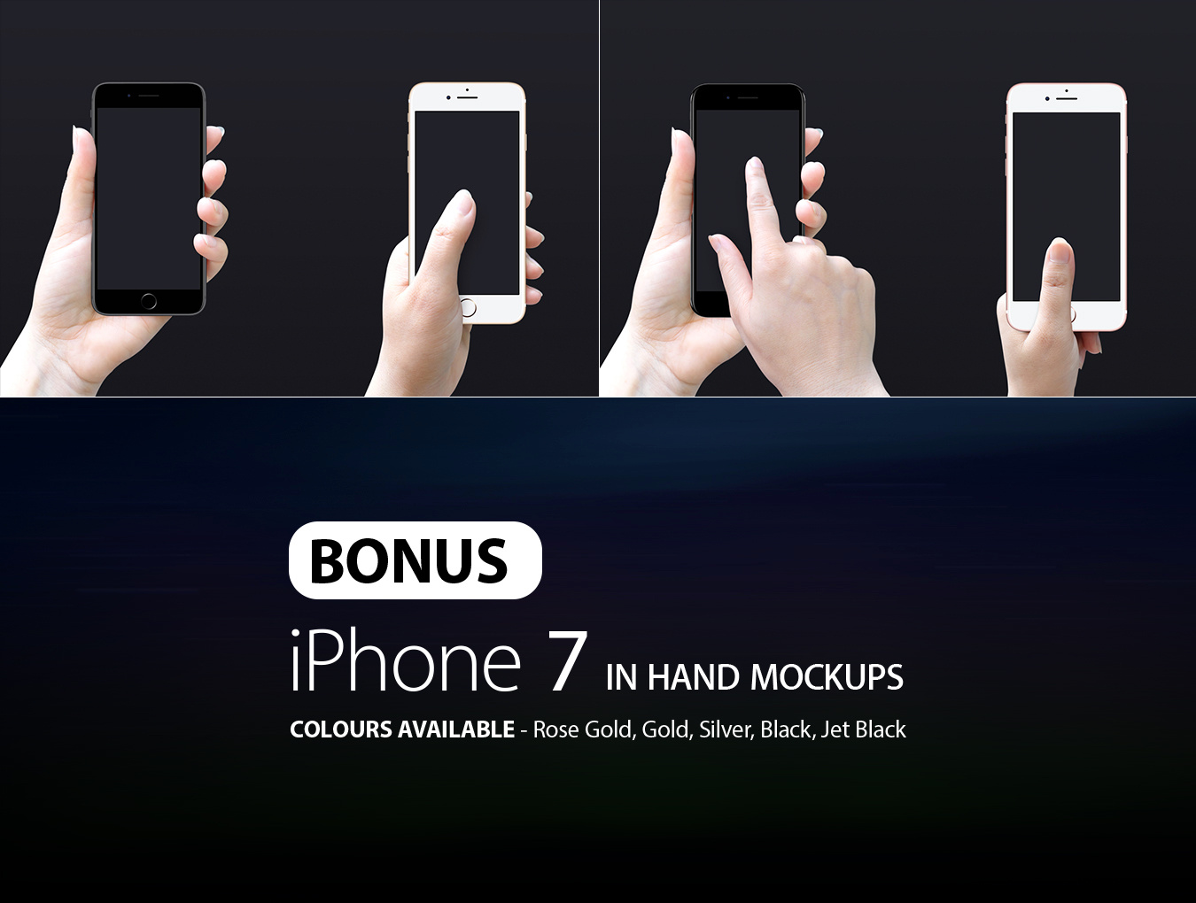 iPhone 7 Mockups有5种颜色和奖励手中的模型,YDLabs 7 Mockups Pack