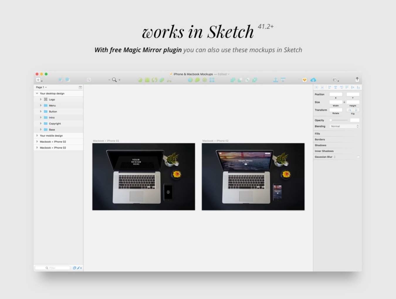 我们知道为您的设计做一个好的演示是多么重要。这就是为什么我们创建了这套华丽的20套Hi-Res iPhone和Macbook模型,这些模型适用于Photoshop和Sketch。 Sketch需要Magic Mirror 2支持。