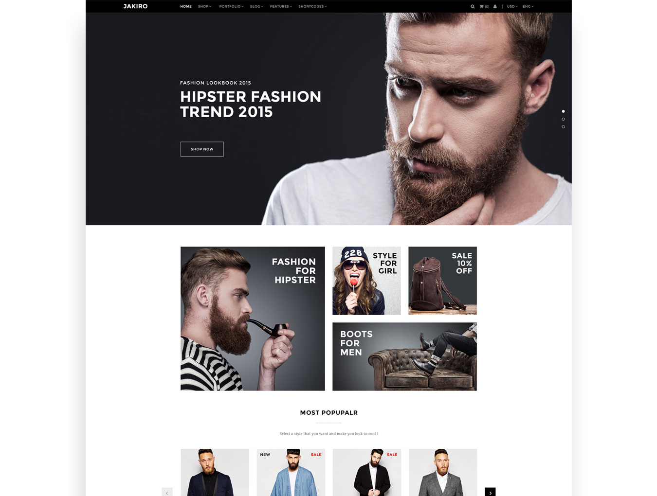 Jakiro被评为我们最独特的时尚PSD模板,用于在线购物,干净而现代的设计。对于店主来说,Jakiro将是一个微妙而明智的选择,可以销售他们最好的产品。在网格系统上设计,您的网站在所有屏幕上都会显得清晰。我们的软件包包括14个组织良好的PSD文件,您可以将此模板转换为WordPress或Magento,Shopify,Joomla,Prestashop,Opencart或其他系统的网站。