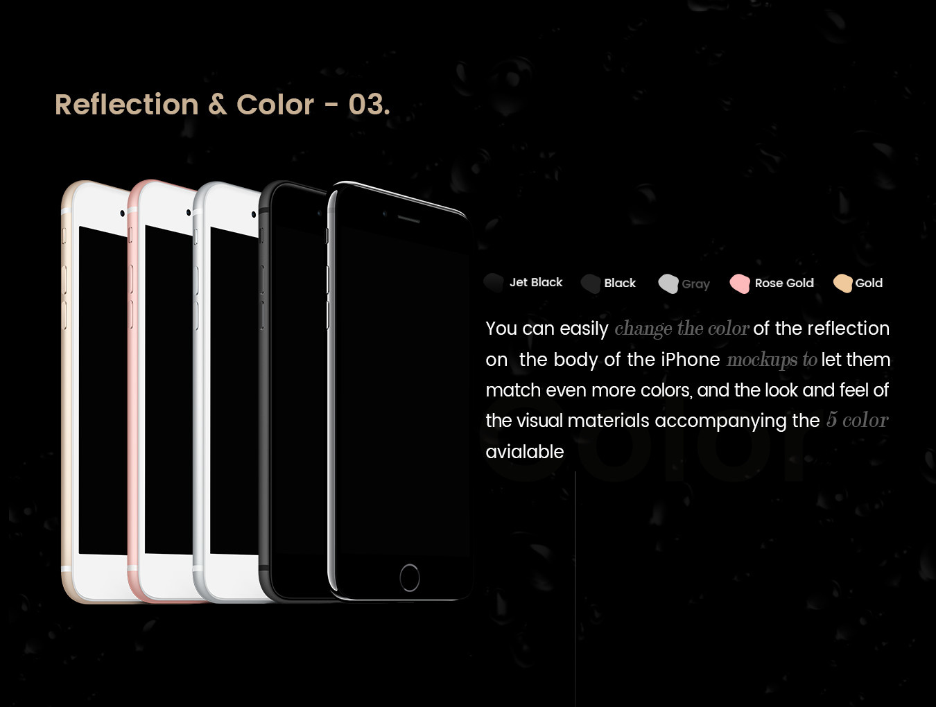 Uidea iPhone 7和7+模型旨在美化产品的展示。与其他渲染不同,这些模型从适当的角度显示设备,以便将注意力集中在屏幕上,同时仍然显示设备的美感。该套件包括5种不同颜色的iPhone 7和7+模型的3个不同角度;银色,玫瑰金,黑色,金色和黑色。更新包括8个额外的黑色和8个额外的Jet Black模型文件。只需几秒钟即可为您的网站或应用程序创建iPhone 7和7+矢量模型。这31个PSD文件使用智能对象功能,因此您可以轻松快速地替换模型内容。