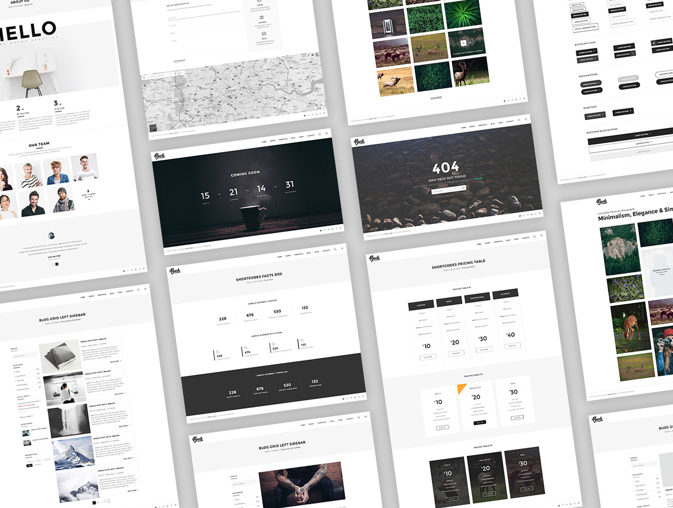 刷 - 干净,美观,极简主义PSD模板,可用于摄影师组合,个人网站,产品网站等!刷子包括7个独特的主页,组织良好,分层。爱与大自然的灵感Photofolio将帮助您吸引更多的游客和潜在客户。包括41个PSD文件,41个屏幕截图和6个类别:主页,页面,博客,投资组合,短代码和悬停。主题内容基于1170px网格系统。