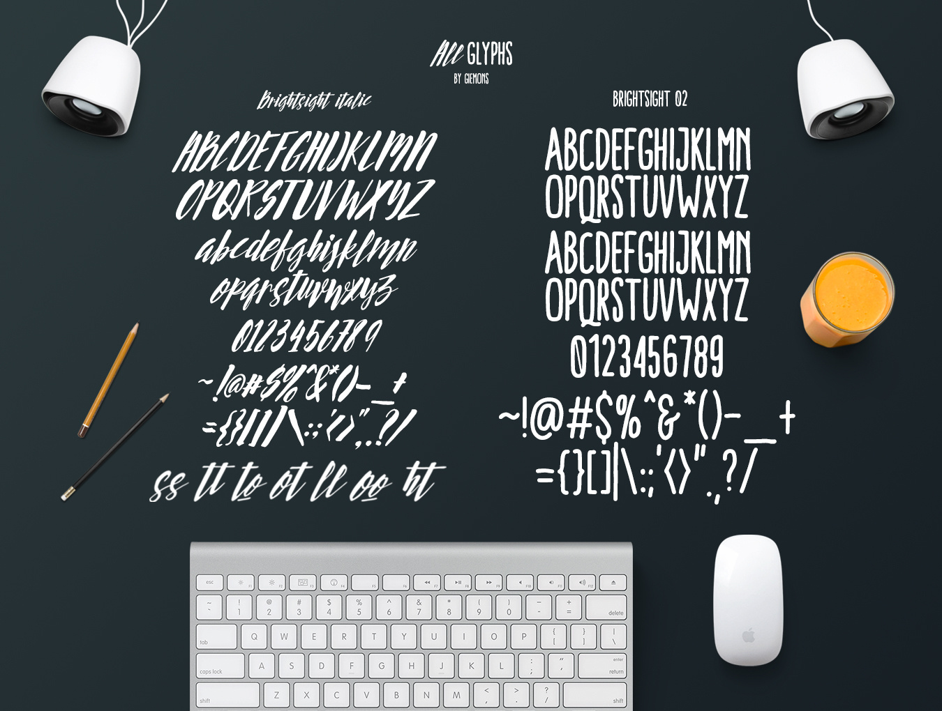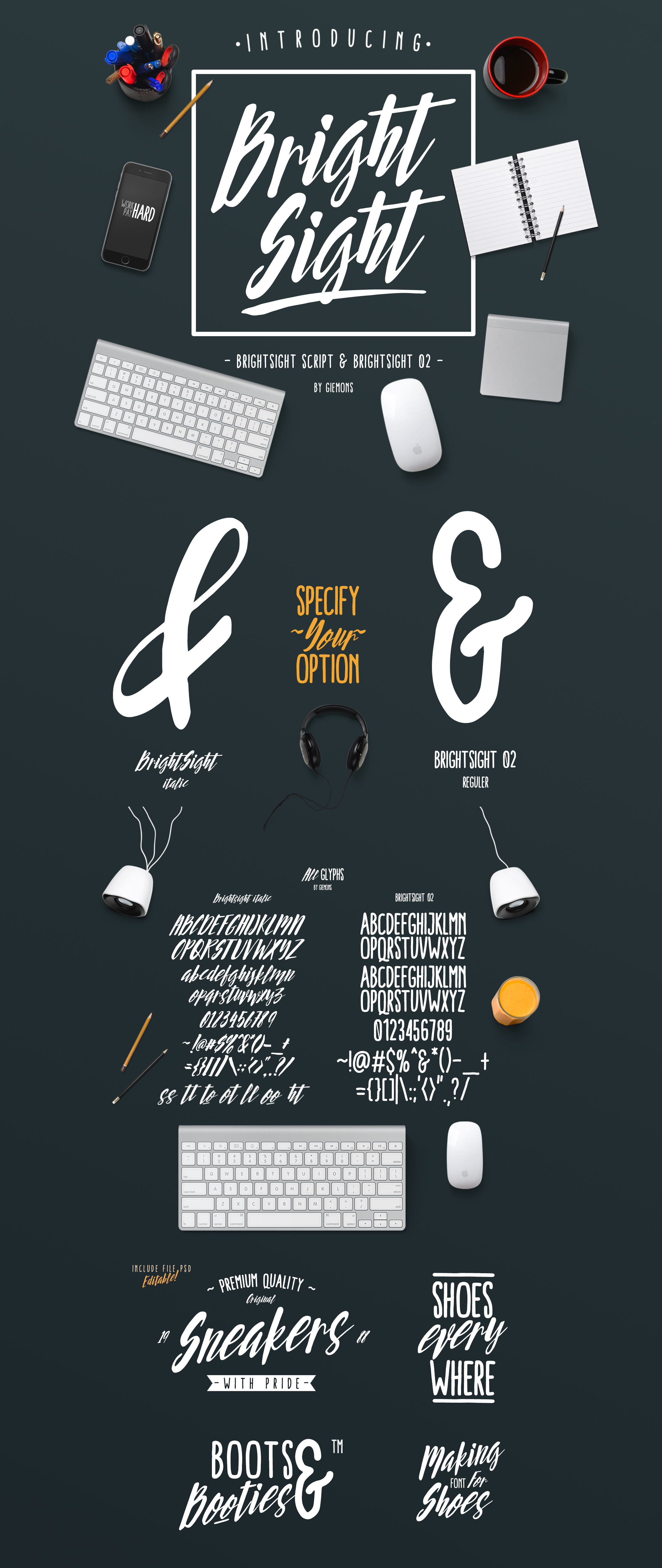 Bright Sight是一套有趣的2种不同字体样式,可以更轻松地传达您的下一个重要设计信息! 使用任一字体创建令人敬畏的徽章,显示,标签,服装,派对海报,电影标题,演出,专辑封面,徽标等等。