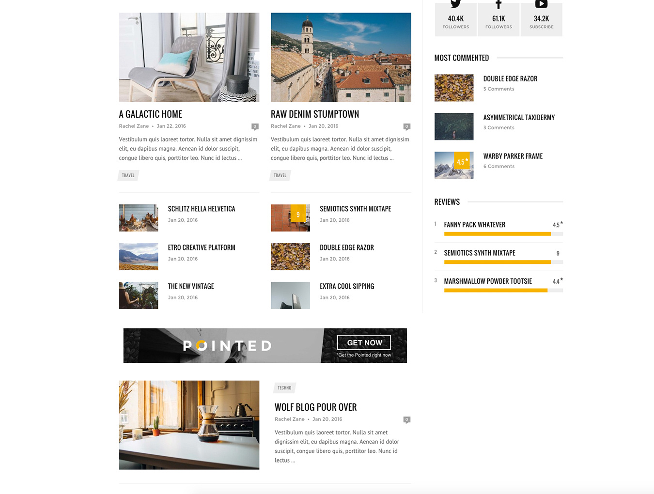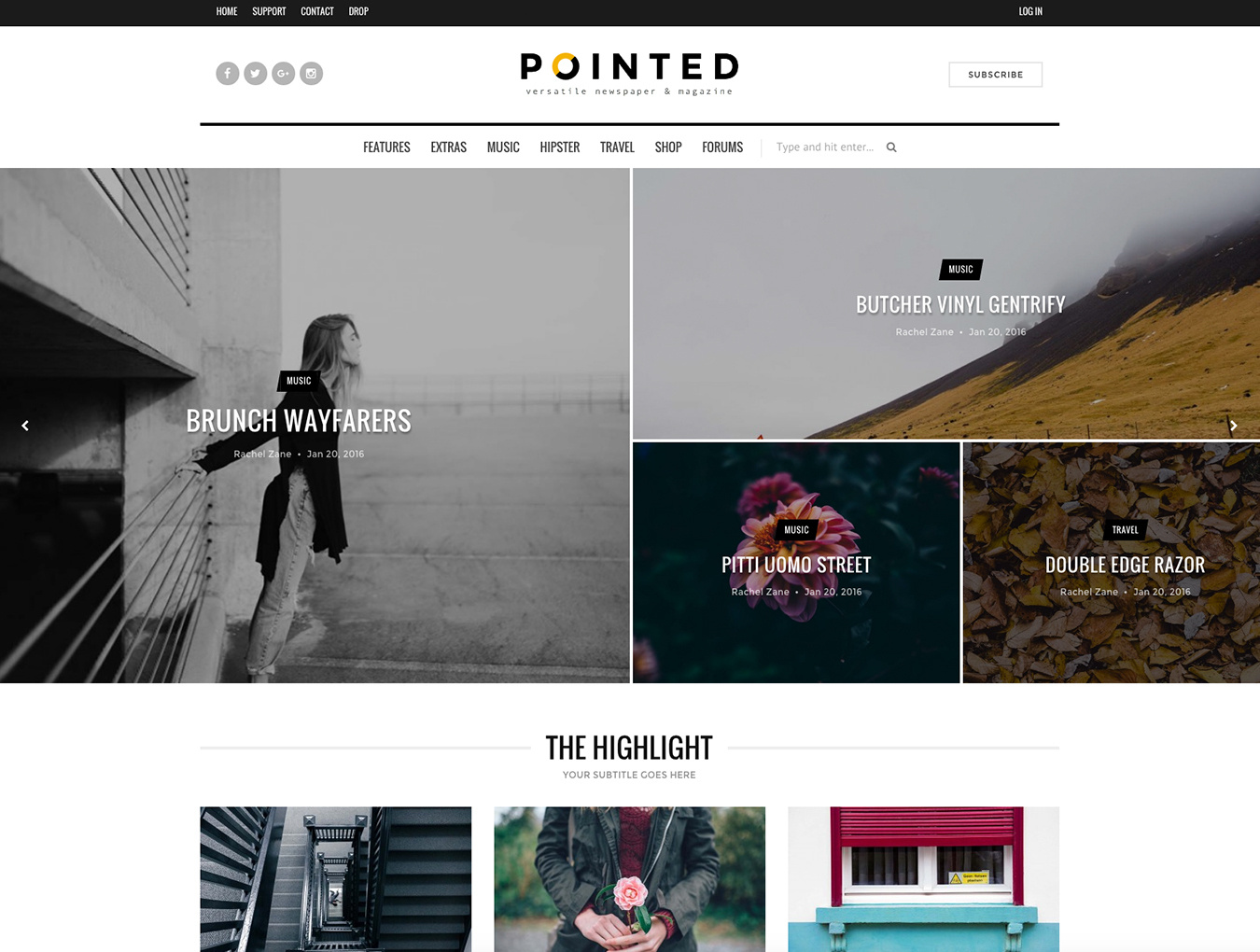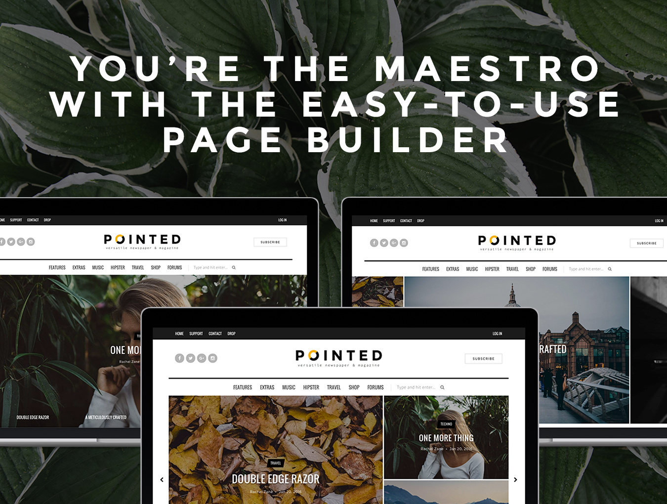 使用Pointed,一个经典轻盈,美观干净的博客和新闻主题,让您的内容焕发光彩。利用Pointed强大易用的页面生成器,显示停止Grid Slider,One Slider,Boxy和Hello Slider将使每个伟大的故事脱颖而出! ??精心设计了SEO,并提供丰富的布局和帖子选项。