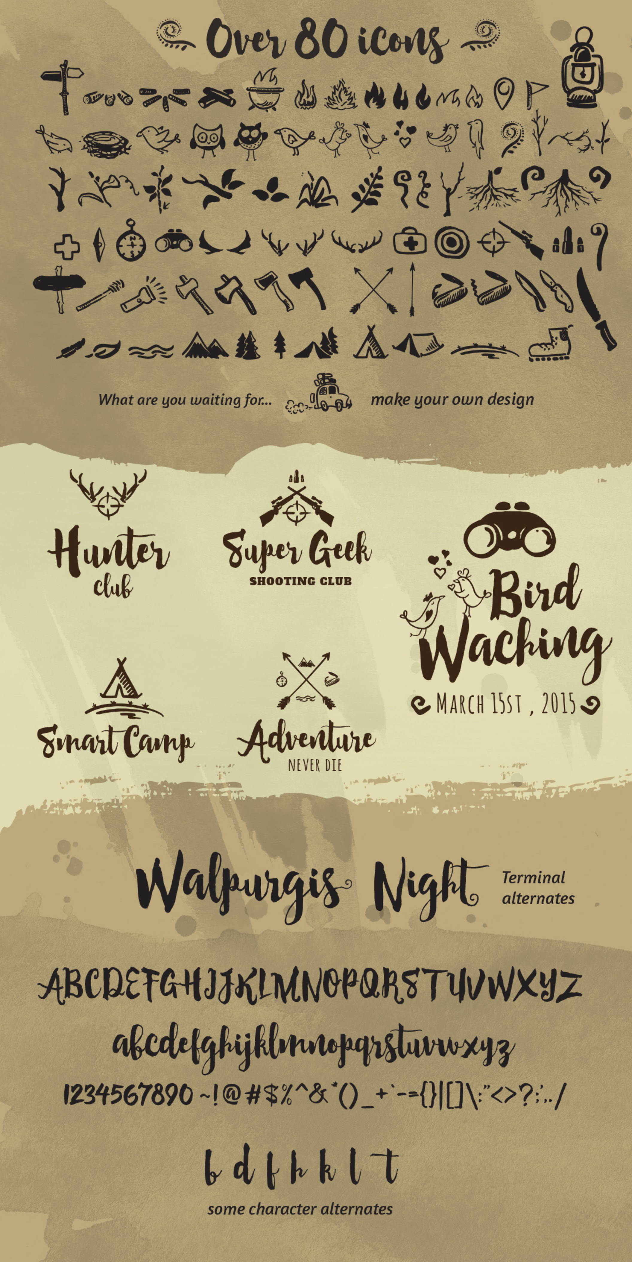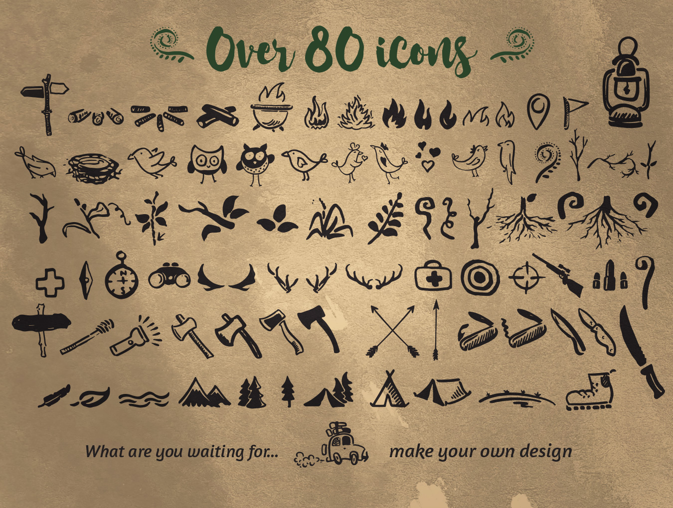 自然手工制作的字体有80多个图标,Grootland
