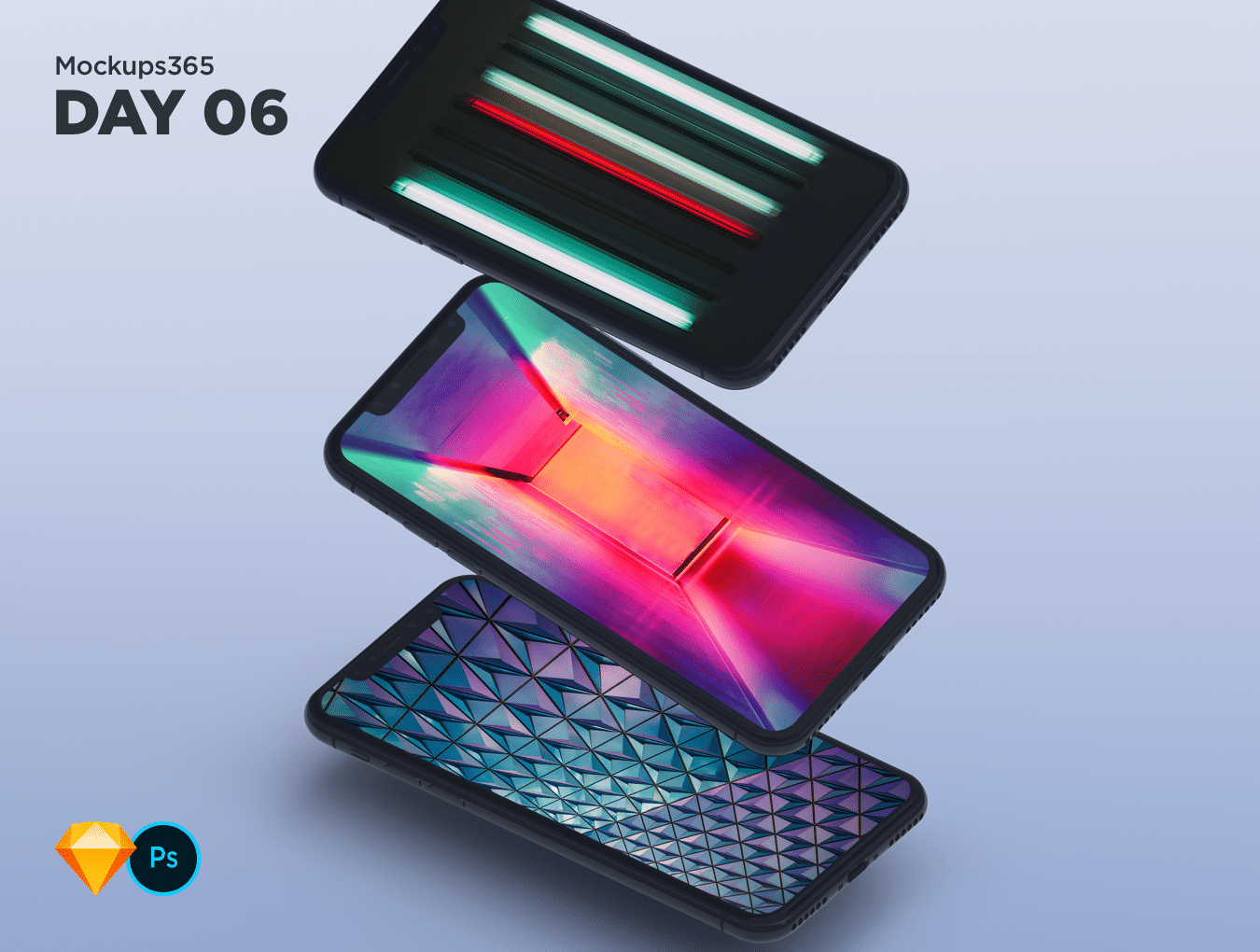 适用于Sketch和Photoshop 4K的iPhone X级联模型,Mockups365:第6天