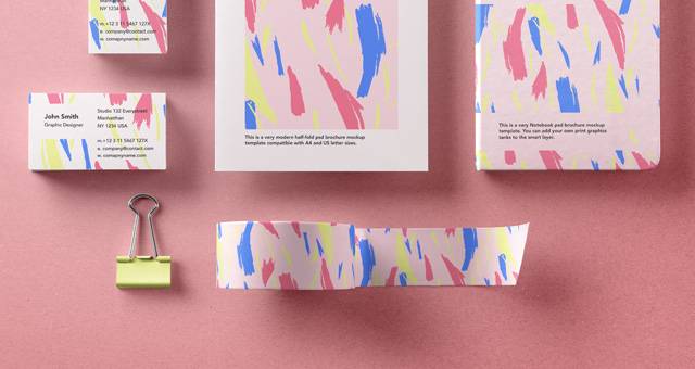 一个非常完整的开销的psd文具模型,包括名片和小册子。在智能层的帮助下轻松添加自己的品牌设计