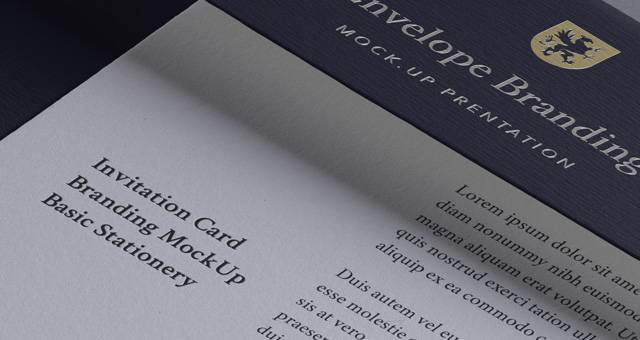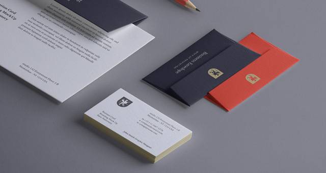 一个美丽的视角psd文具模型,包括两个信封尺寸和其psd名片。智能层可轻松显示您的品牌图形。