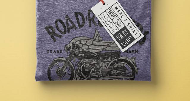 这是一个折叠的psd石南花T恤样式与三混合的样子。轻松添加自己的图形,展示您的下一个服装设计。