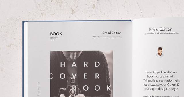 这是我们的A5 psd精装书模型的顶视图,包括前盖和打开的内页书。我们还添加了一个阅读玻璃配件,以配合您的展示与风格。轻松更改图书颜色,并使用智能图层添加图形。