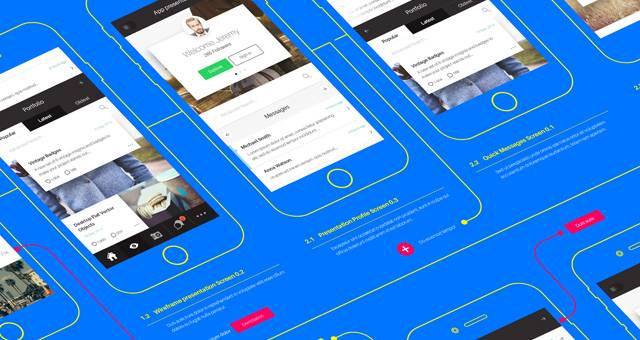 一种新的设备应用程序线框展示,可显示您的不同移动设计。轻松更新智能对象插图矢量形状,创建您的应用程序流程设计。