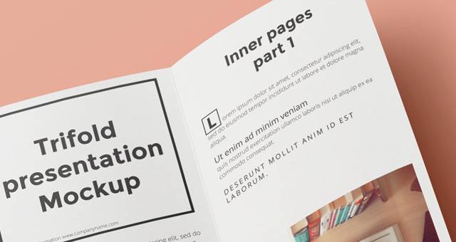 一个现代和微妙的psd三重模型模板,内部视图显示您的下一个小册子项目。使用智能图层轻松添加任何设计到我们的模型。