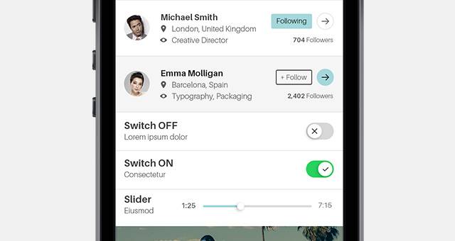 Groove是一款经典而微妙的平板移动应用UI设计。您可以使用特定的自定义UI元素来轻松创建自己的应用程序设计。