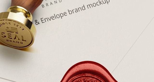 这是一个非常优雅和现实的木制psd蜡密封邮票与蜡密封的信封模型。展示品牌形象的一种非常独特的方式。