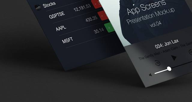 一个等距倾斜的应用程序屏幕透视模型与两个可用的屏幕设计画布来呈现您的设计。它使用智能层易于使用。