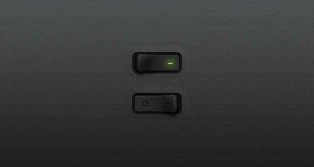 两个开/关开关按钮进入暗淡的主题设计。这些高度详细的开关按钮非常适合在任何网络或移动应用程序中使用易于使用的操作按钮。